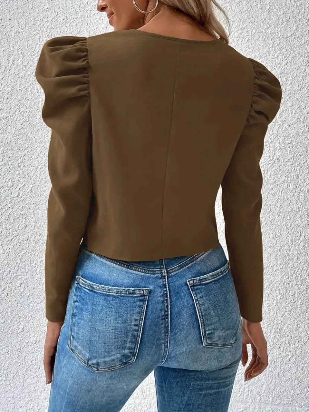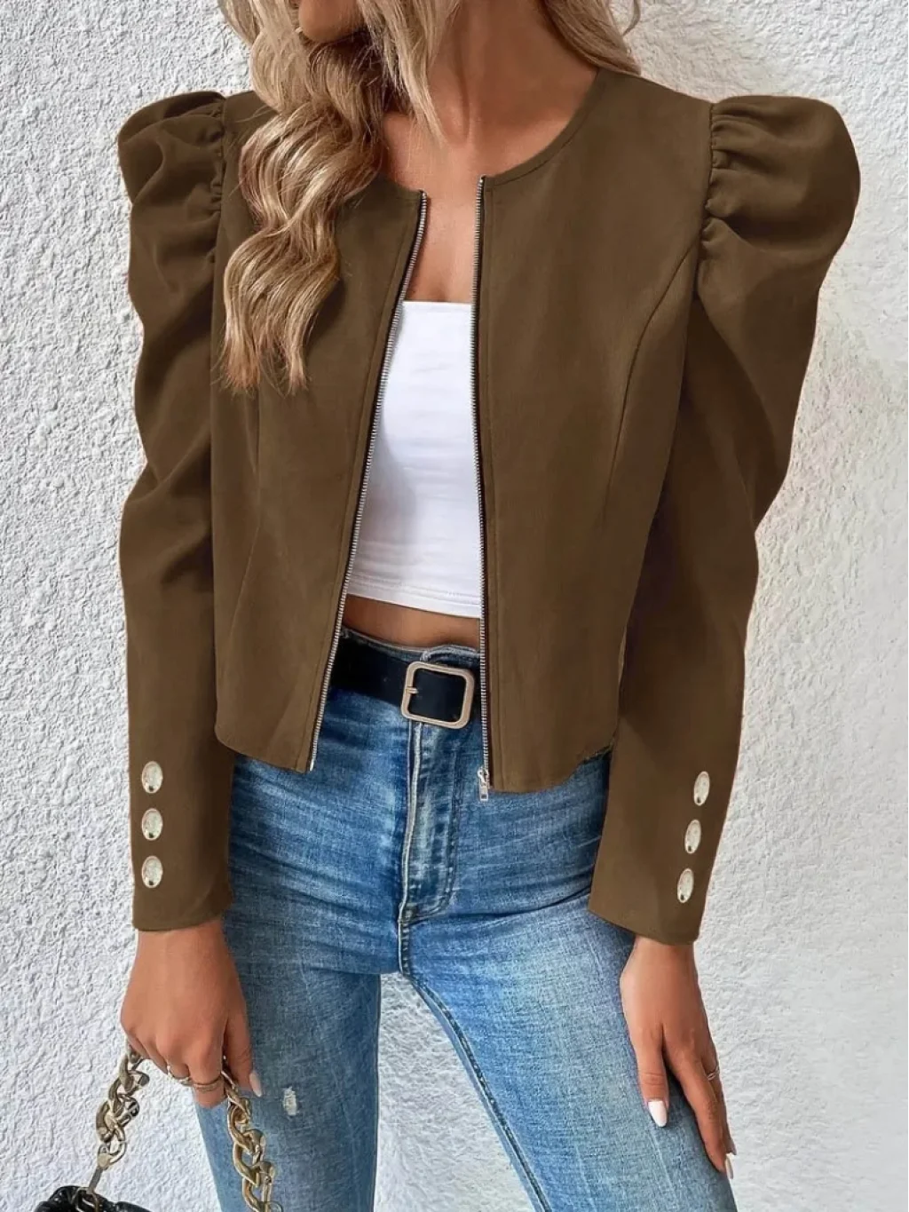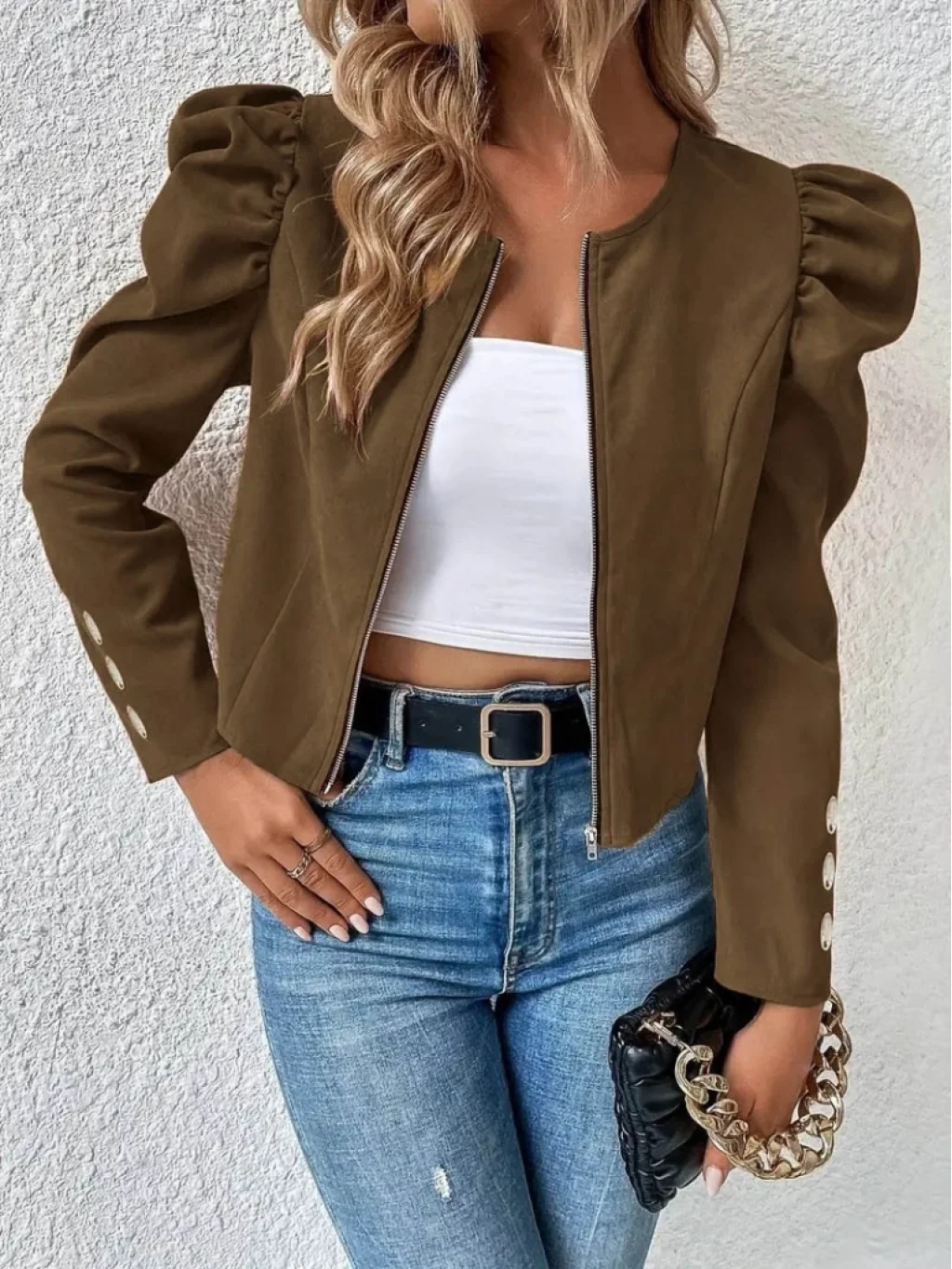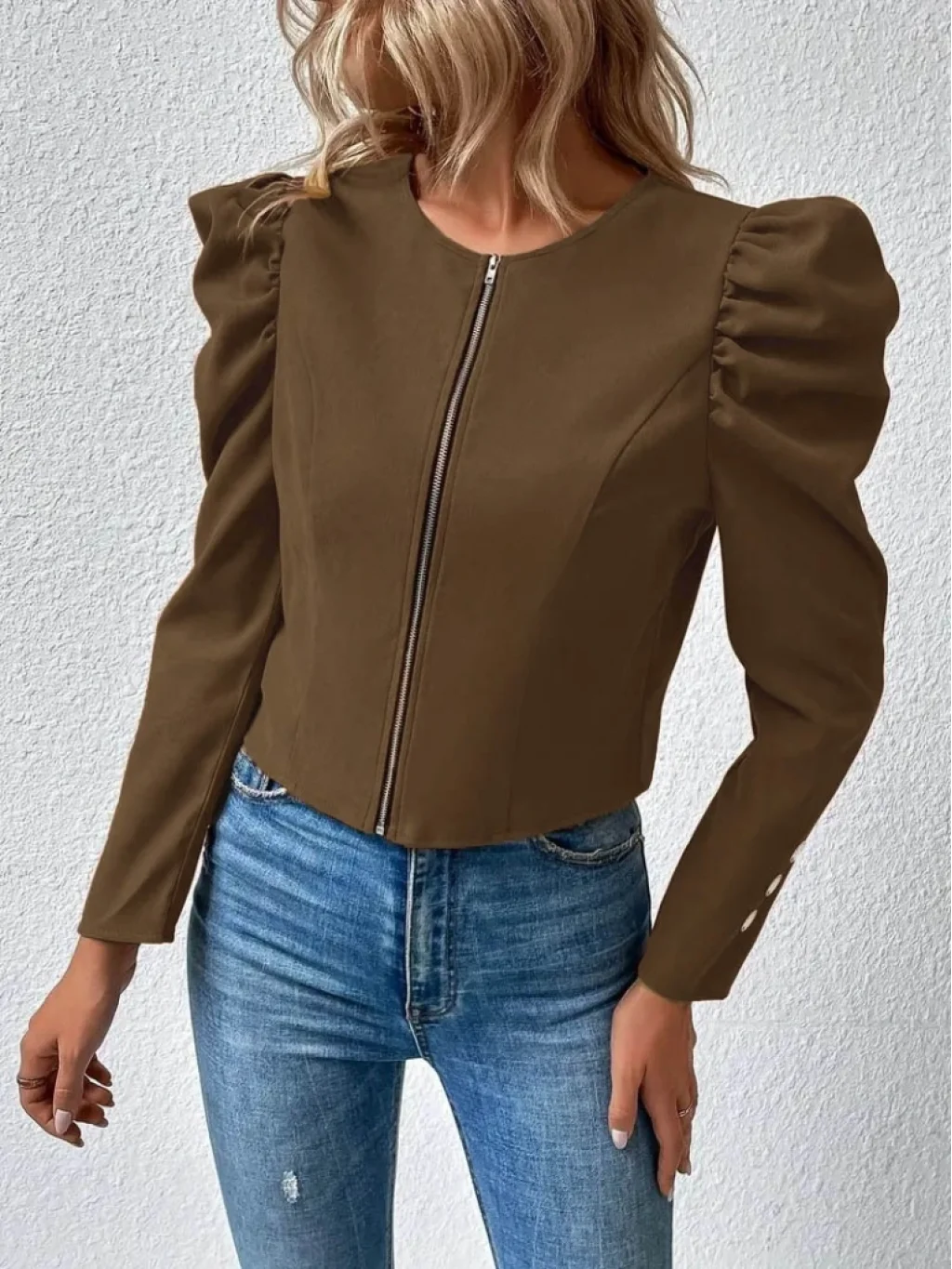 Kadın Uzun Kollu önden Fermuarlı Balon Kol Süet Ceket