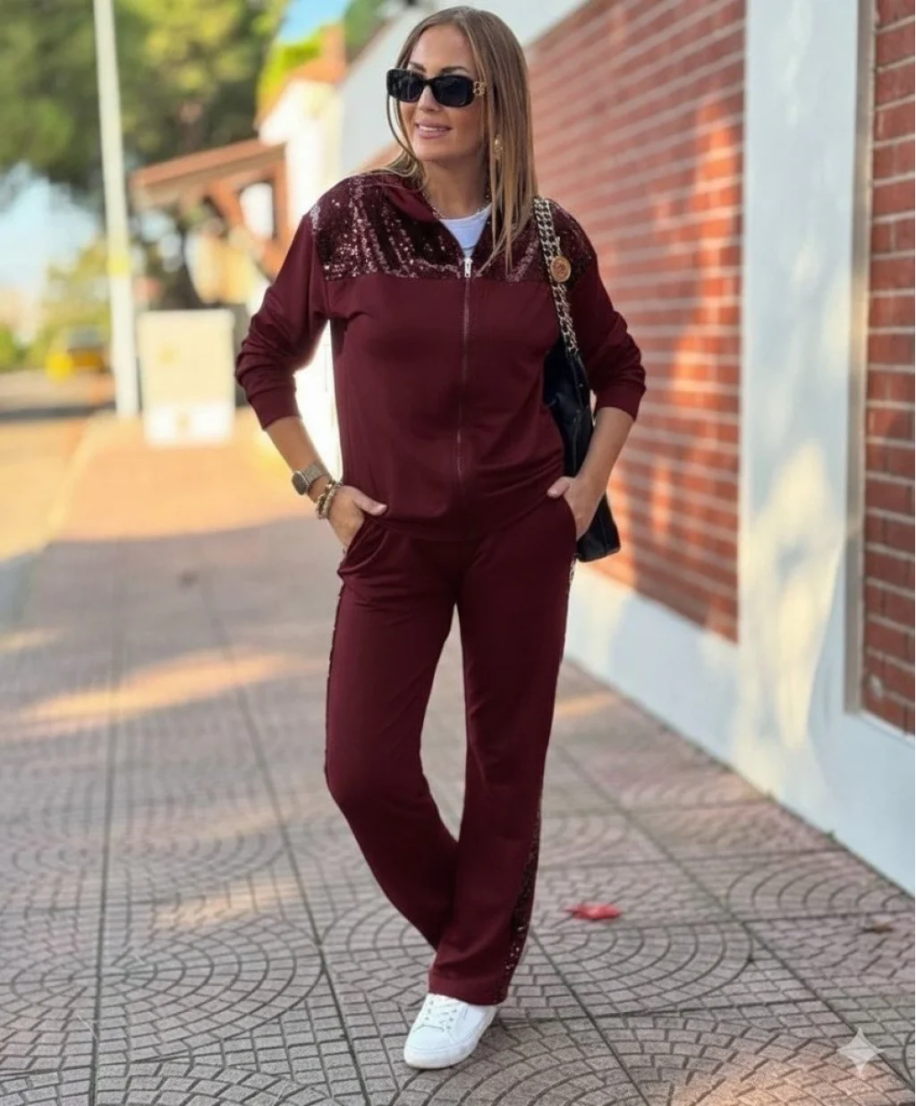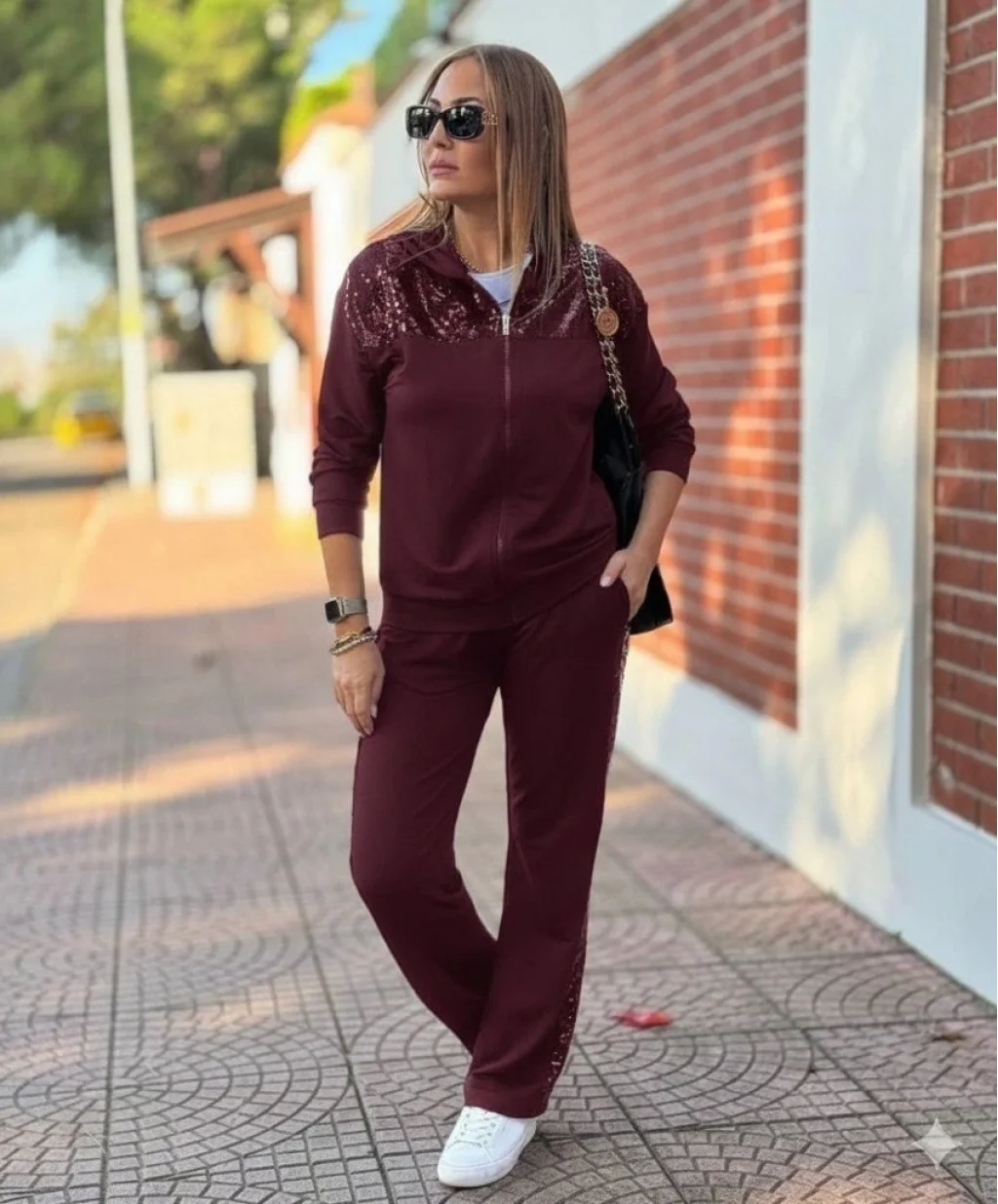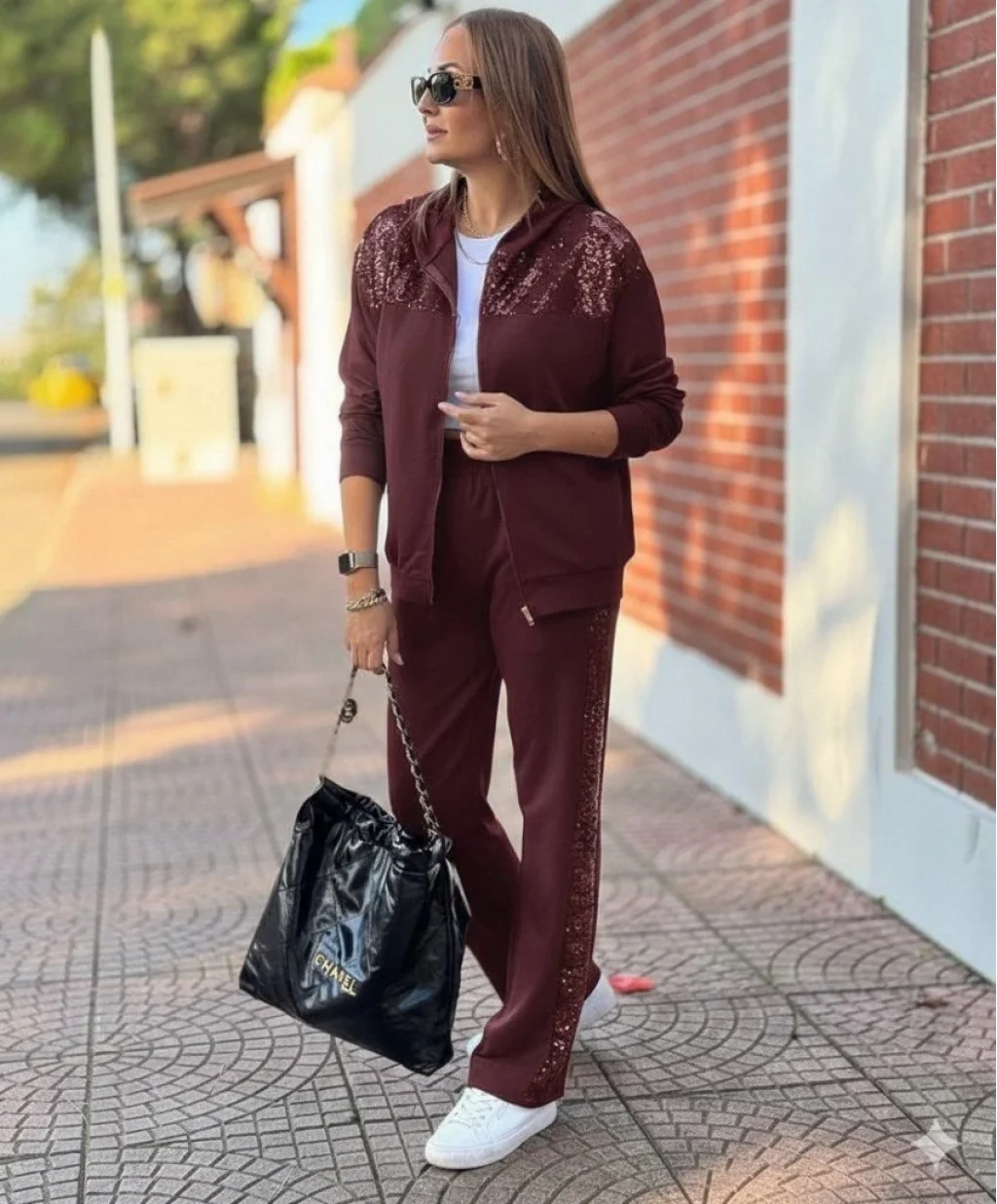 Kadın Uzun Kollu önden Fermuarlı Pul Payetli Alt üst Viskon Iki Iplik Takım