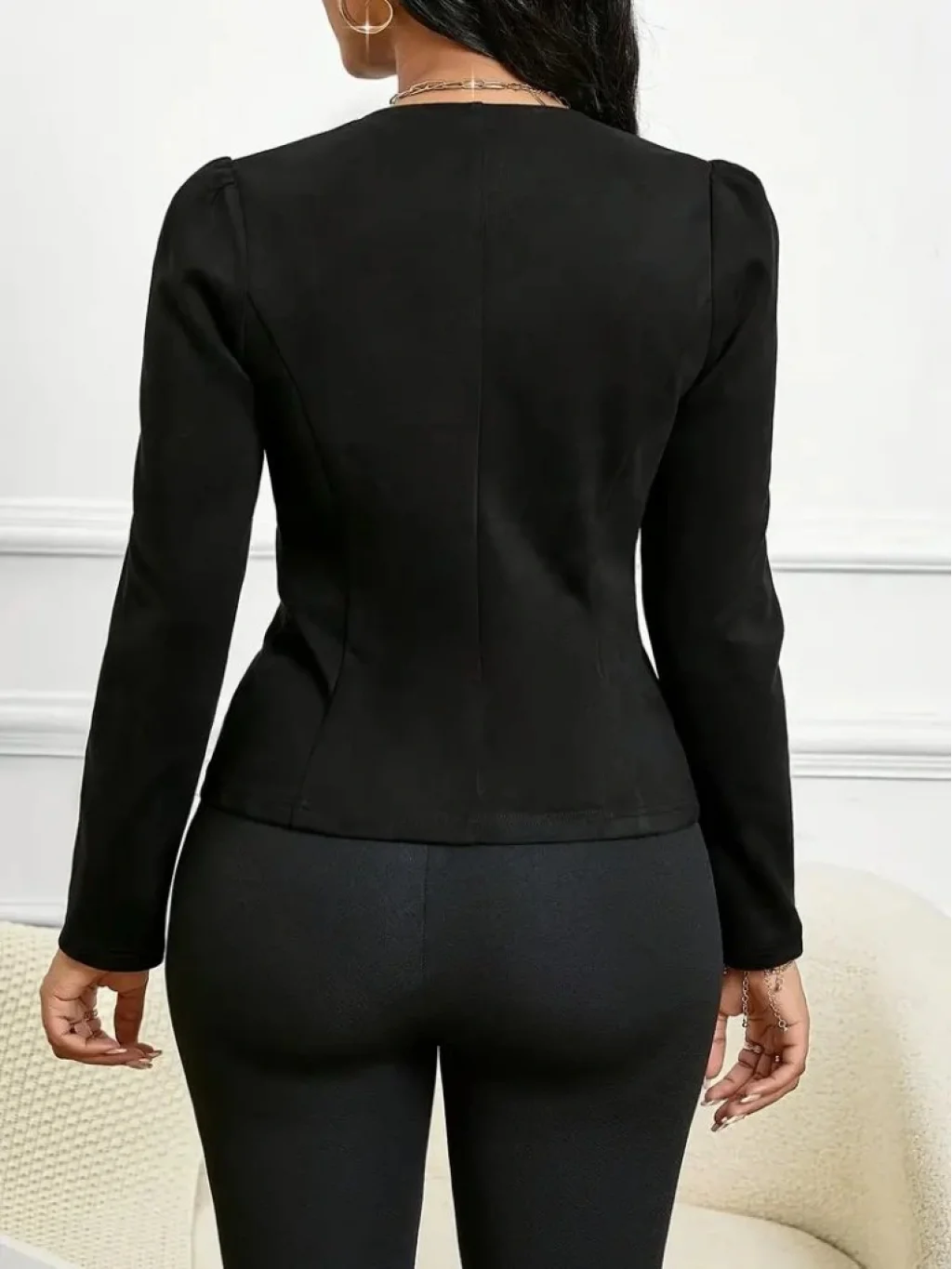 Kadın Uzun Kollu önü Açık Düğmeli Kısa Süet Ceket
