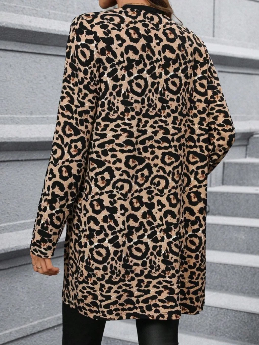 Kadın Uzun Kollu önü Açık Leopar Desenli Modal Ceket