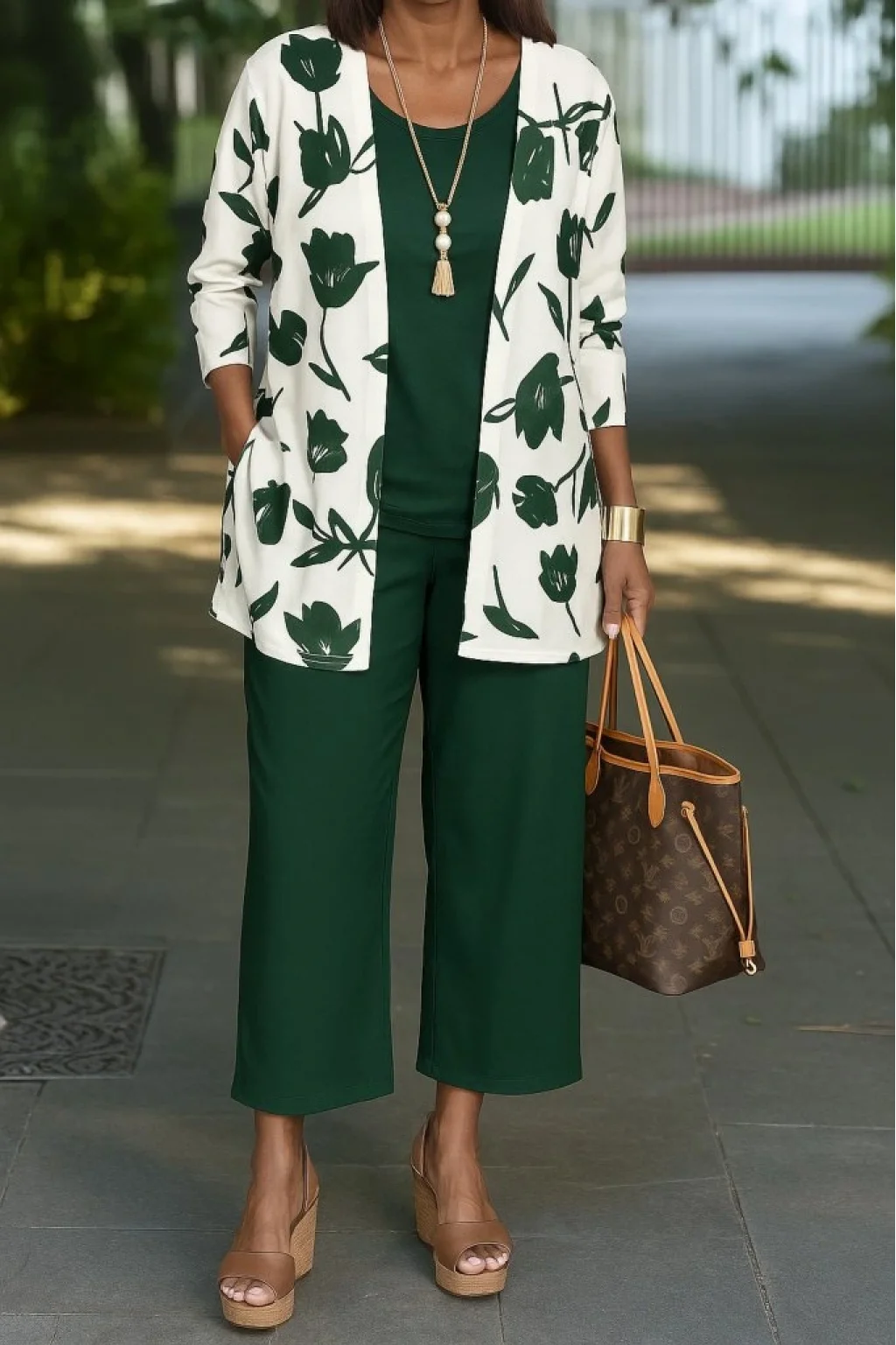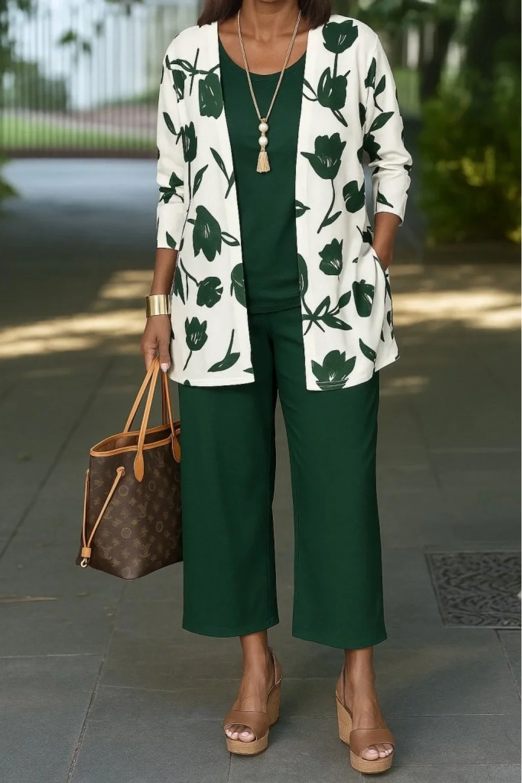 Kadın Uzun Kollu önü Açık Modal Ceket Kolsuz Viskon Iki Iplik Bluz Ve Pantolon üçlü Takım