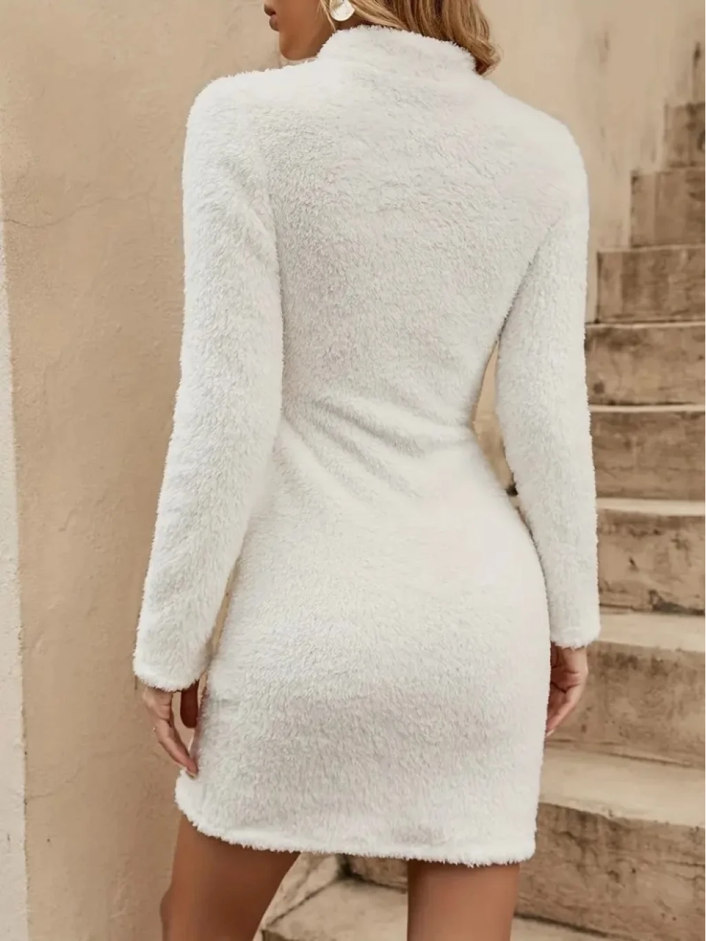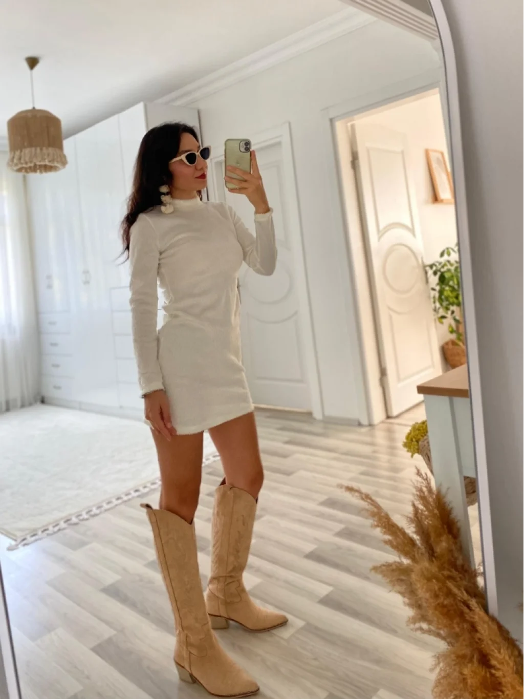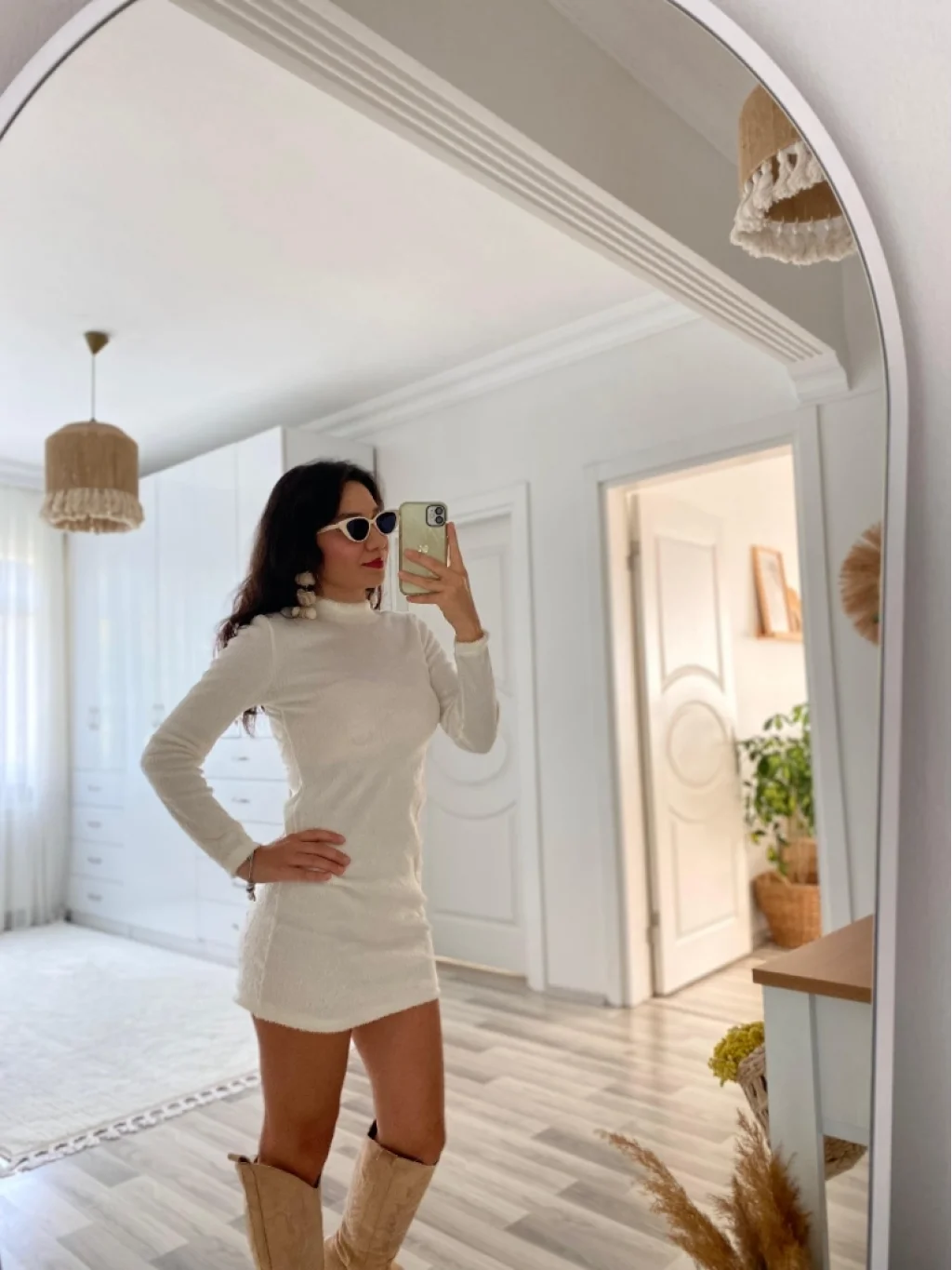 Kadın Uzun Kollu Peluş Mini Boy Elbise