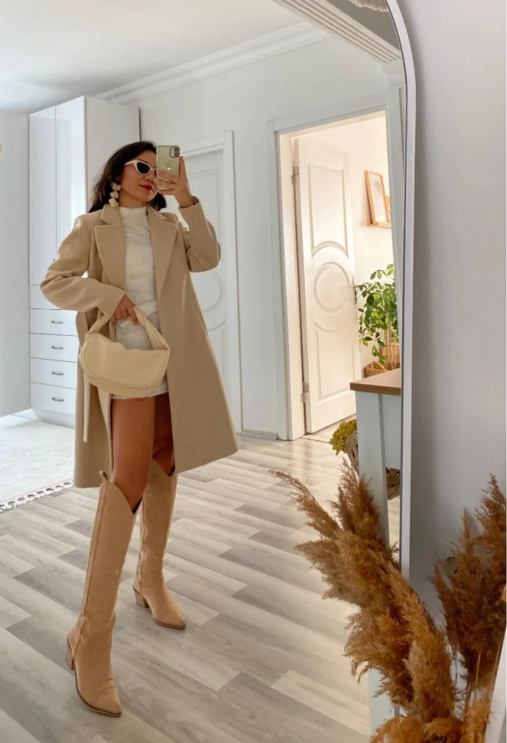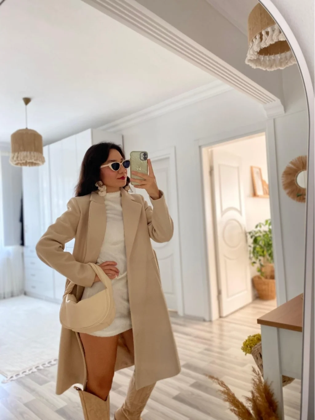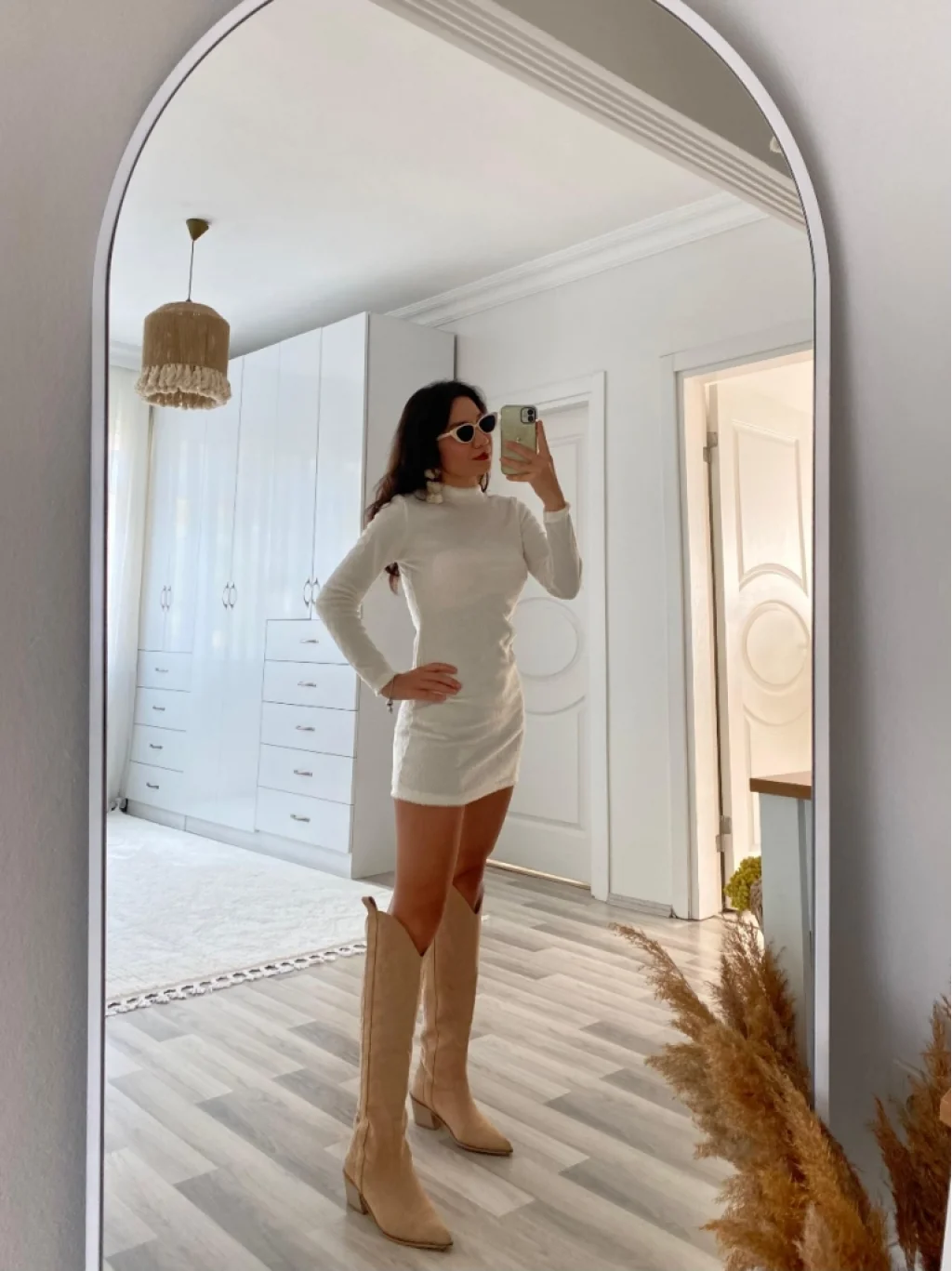 Kadın Uzun Kollu Peluş Mini Boy Elbise