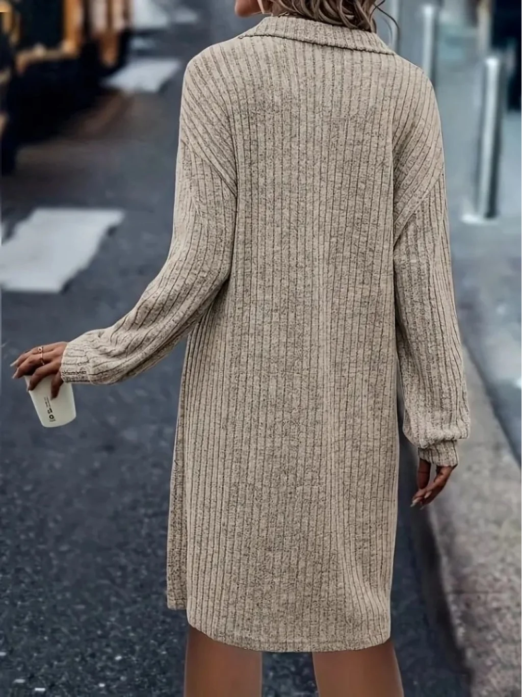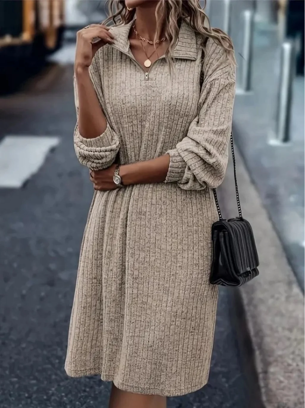 Kadın Uzun Kollu Polo Yaka Fermuar Detaylı şardonlu Kaşkorse Mini Boy Elbise