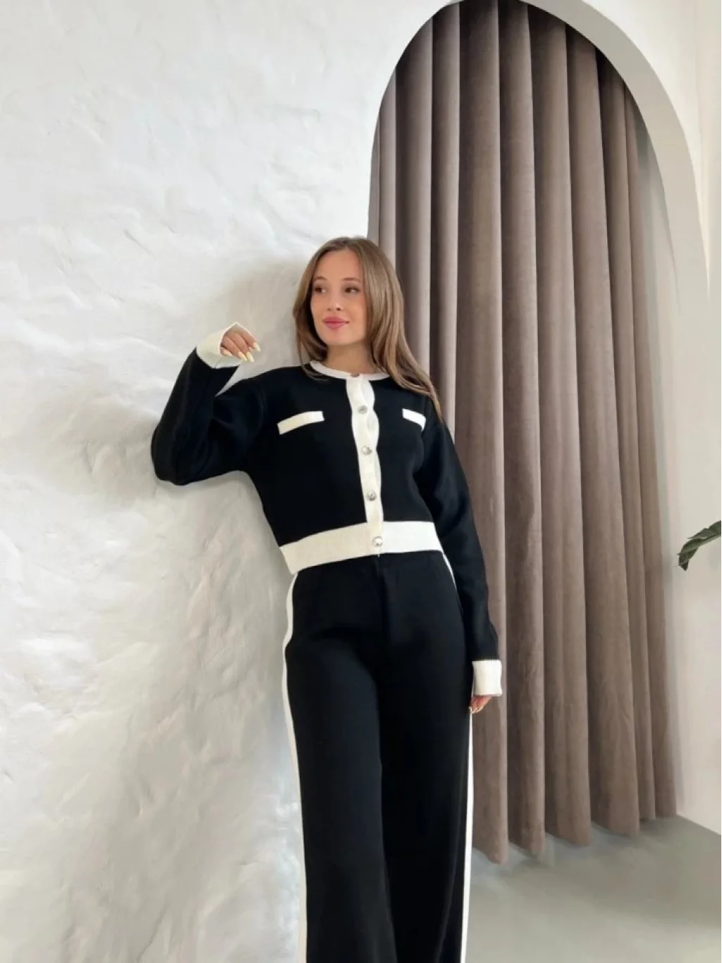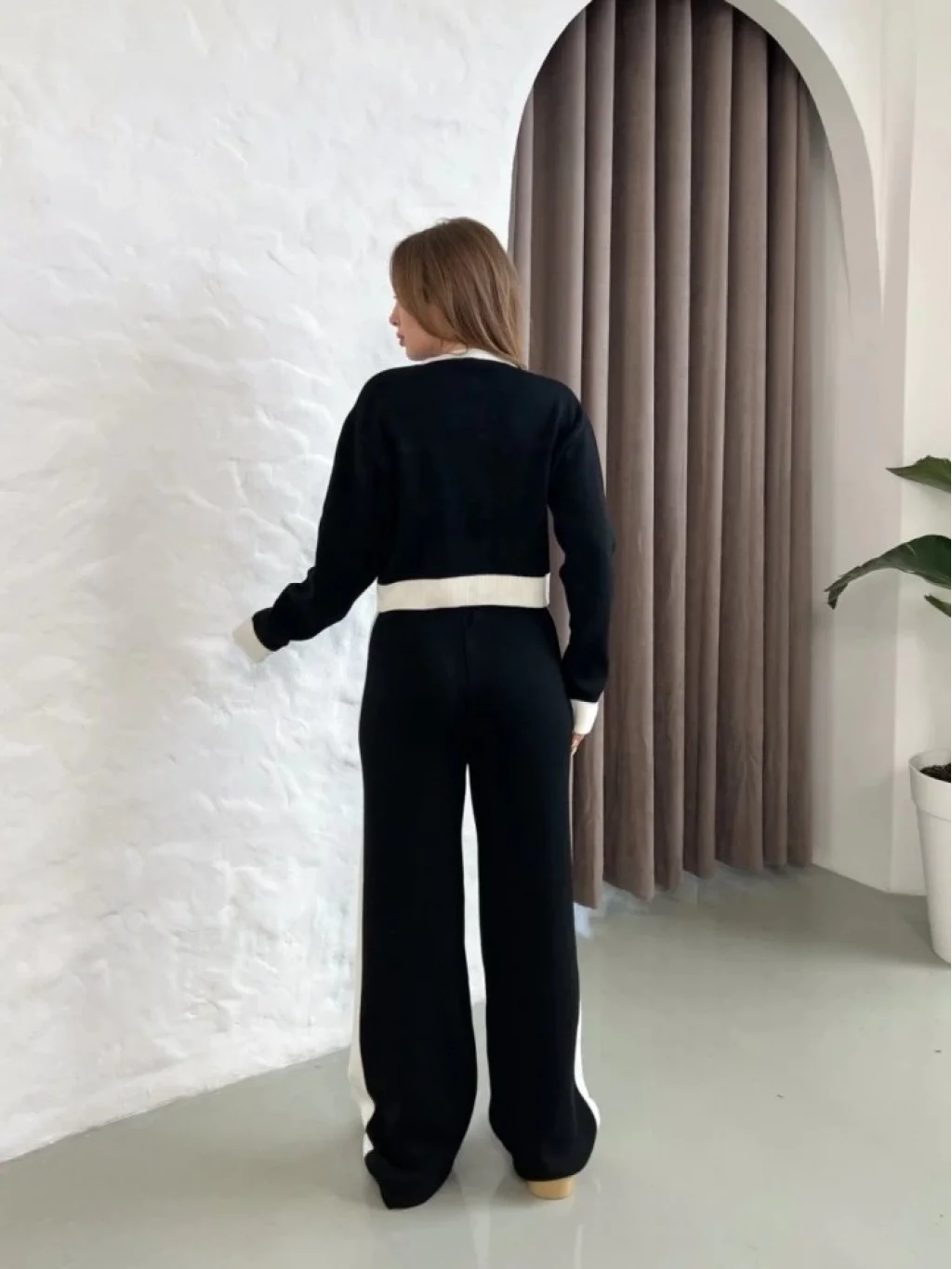 Kadın Uzun Kollu şerit Detay Triko Takım