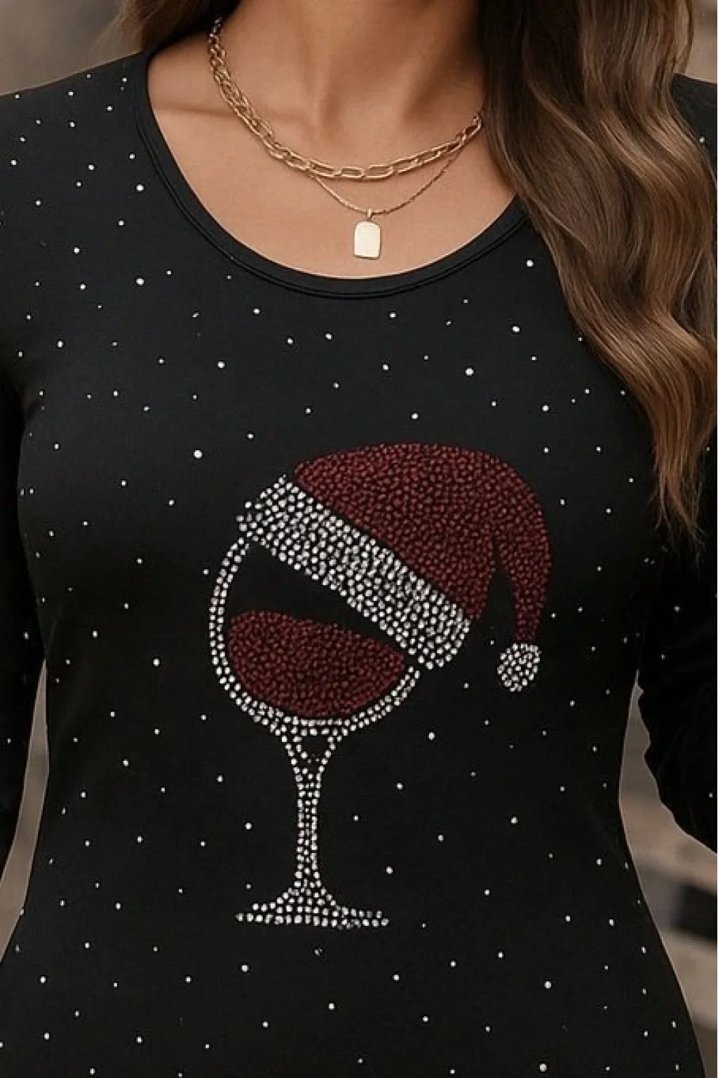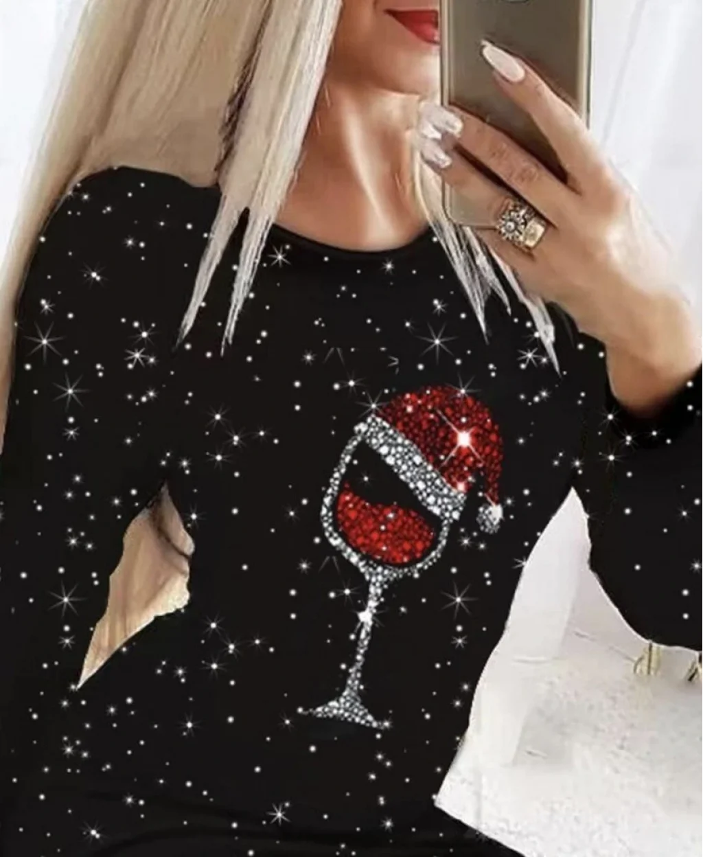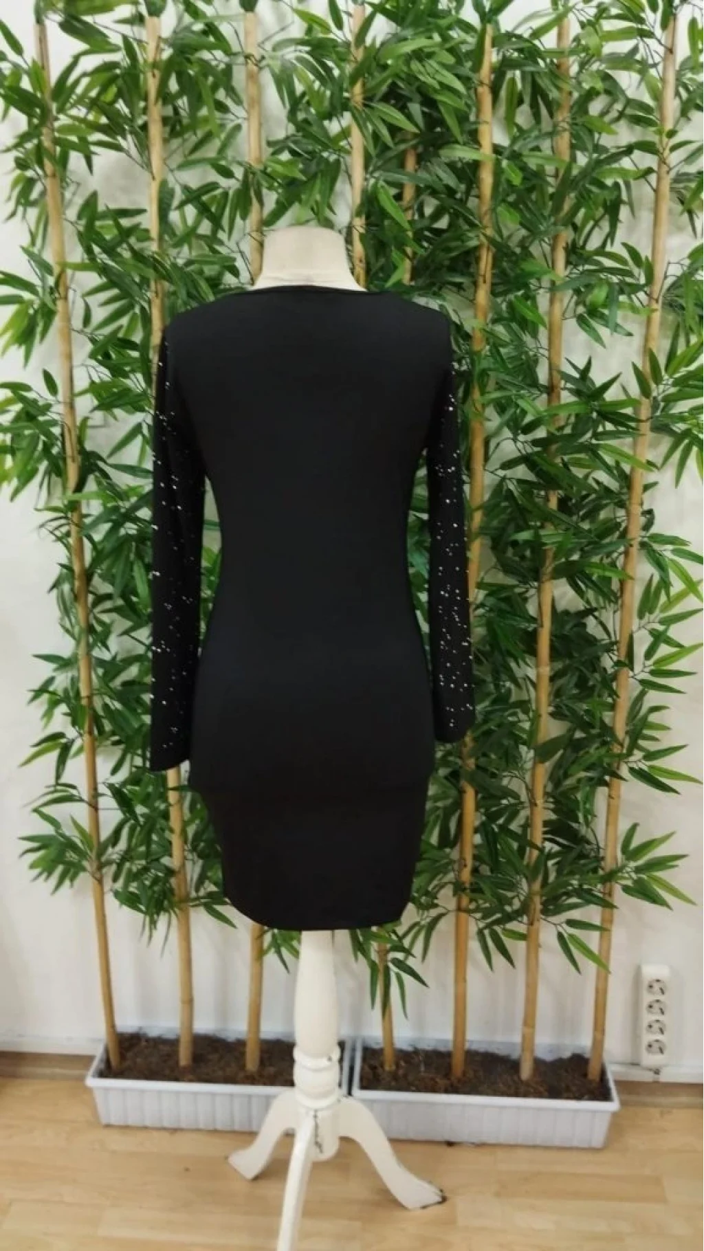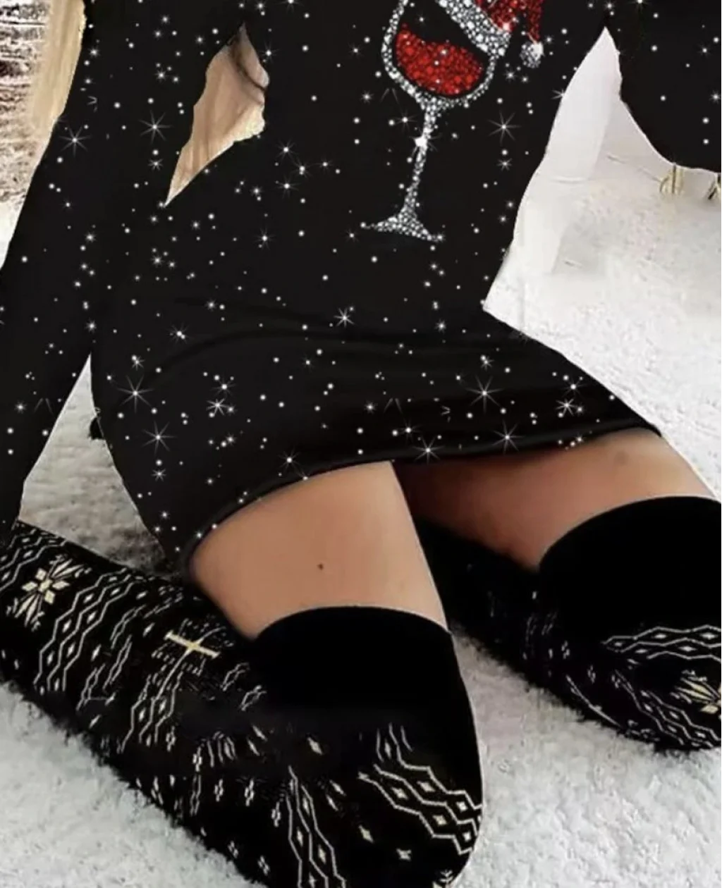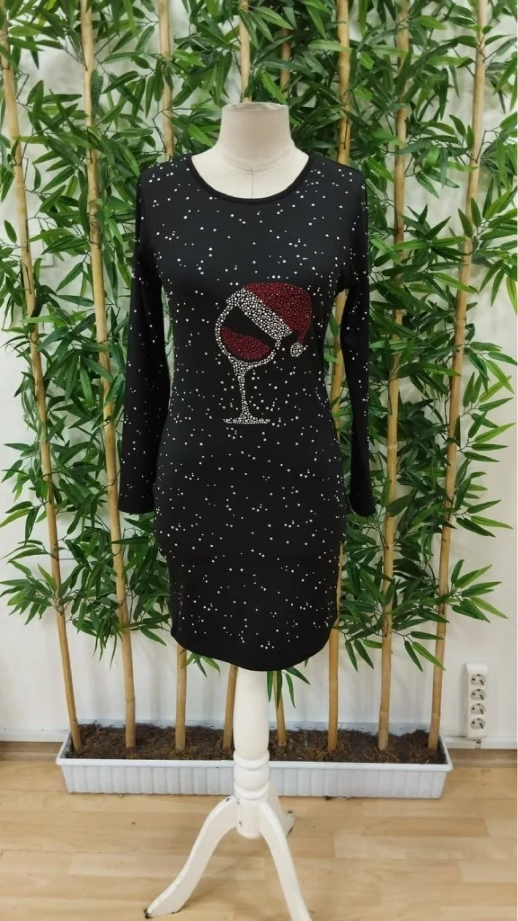 Kadın Uzun Kollu Taş Kadeh Baskı Dalgıç Mini Boy Elbise