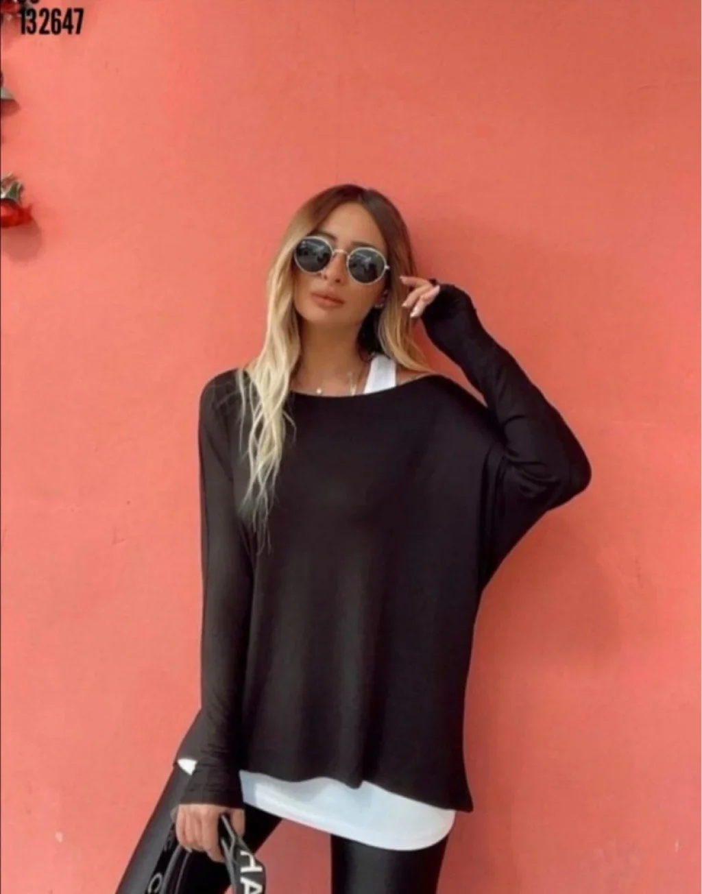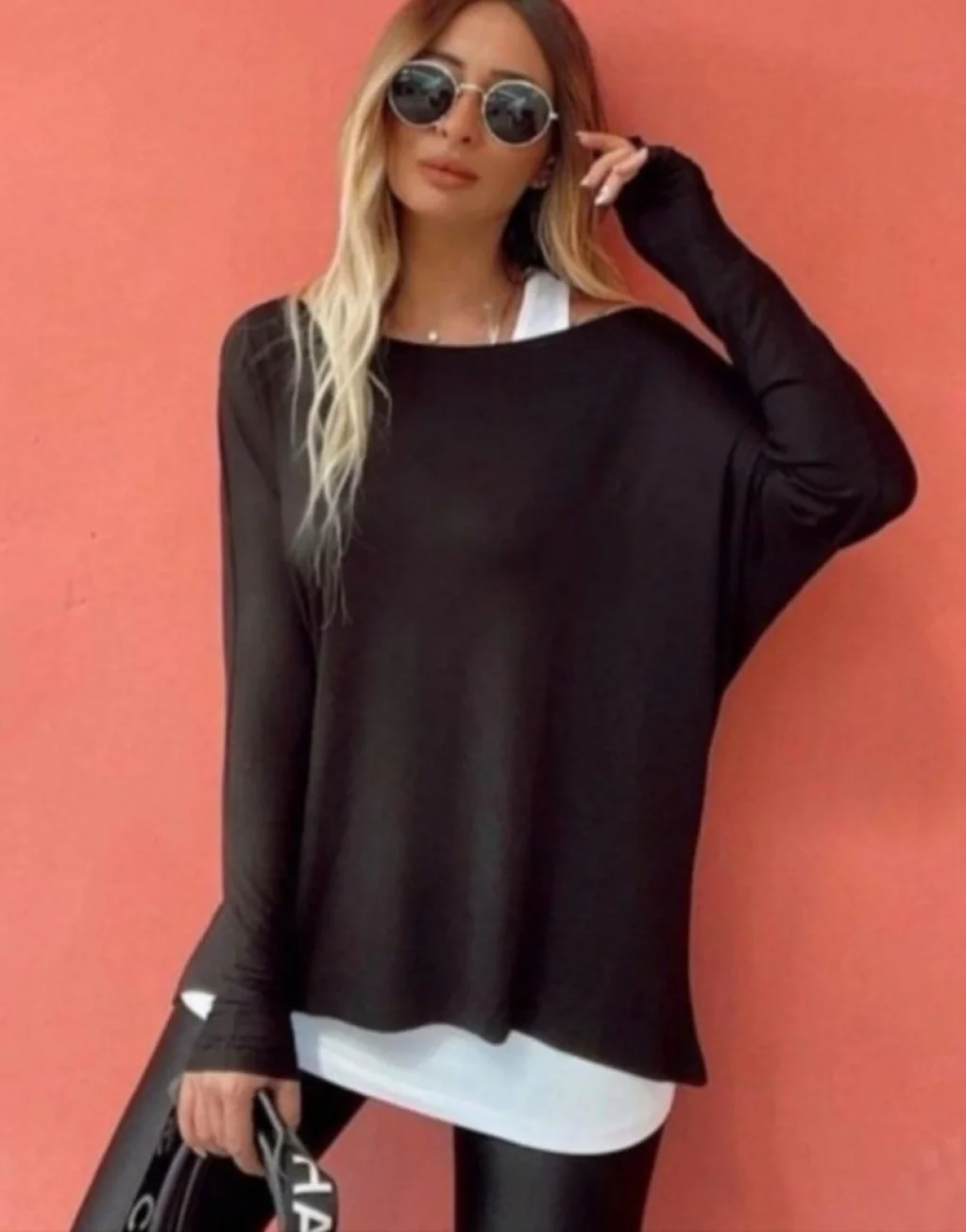 Kadın Uzun Kollu Tek Omuzdan Açık çilek Bluz Ve Viskon Atlet Ikili Takım