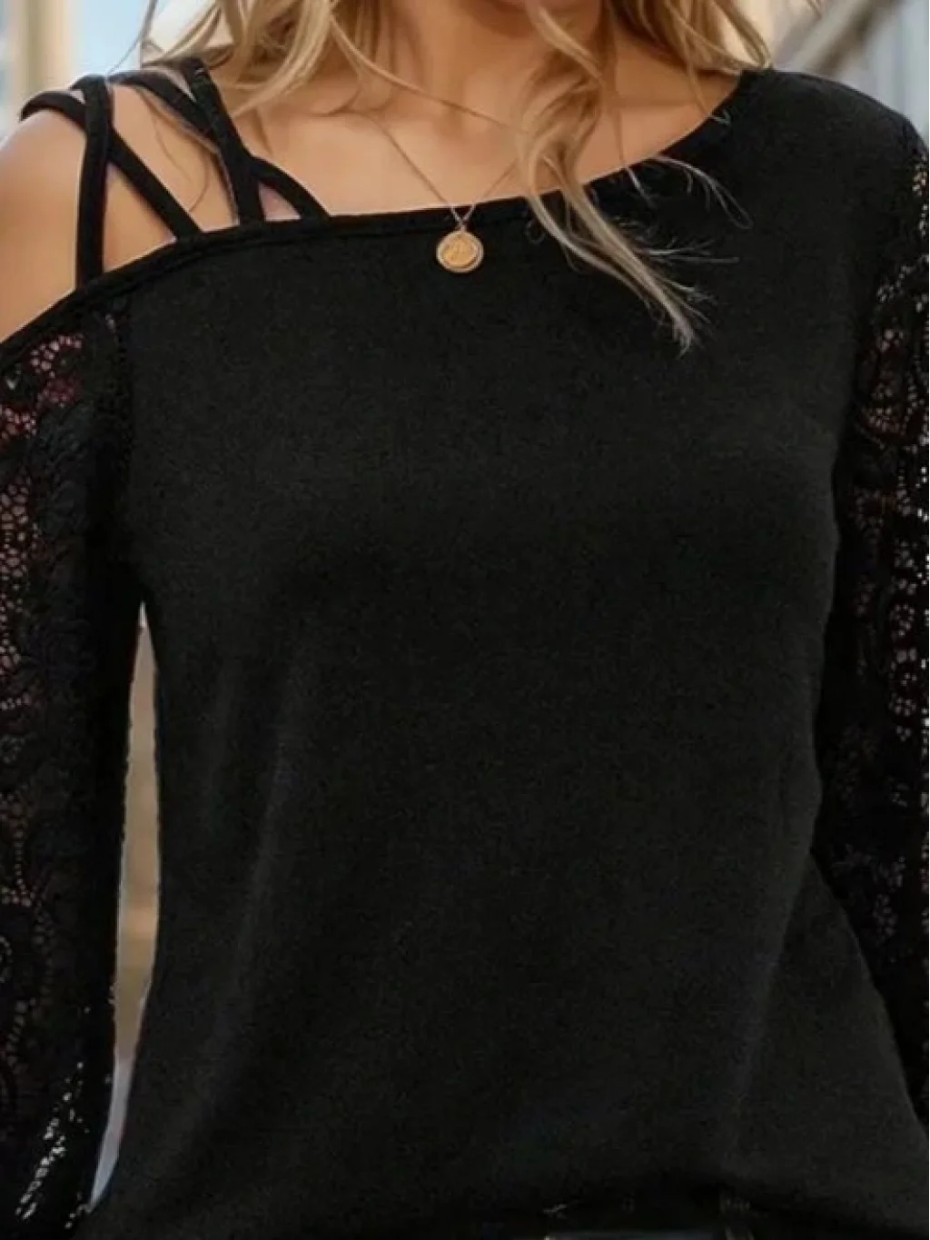 Kadın Uzun Kollu Tek Omuzu çapraz şerit Detaylı Viskon Iki Iplik Bluz