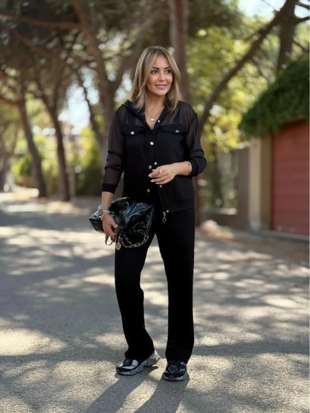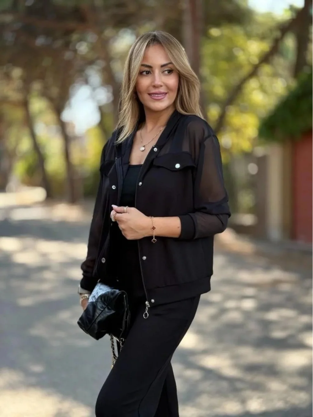 Kadın Uzun Kollu Tül Detaylı önü Düğmeli Viskon Iki Iplik Ceket Ve Pantolon Ikili Takım