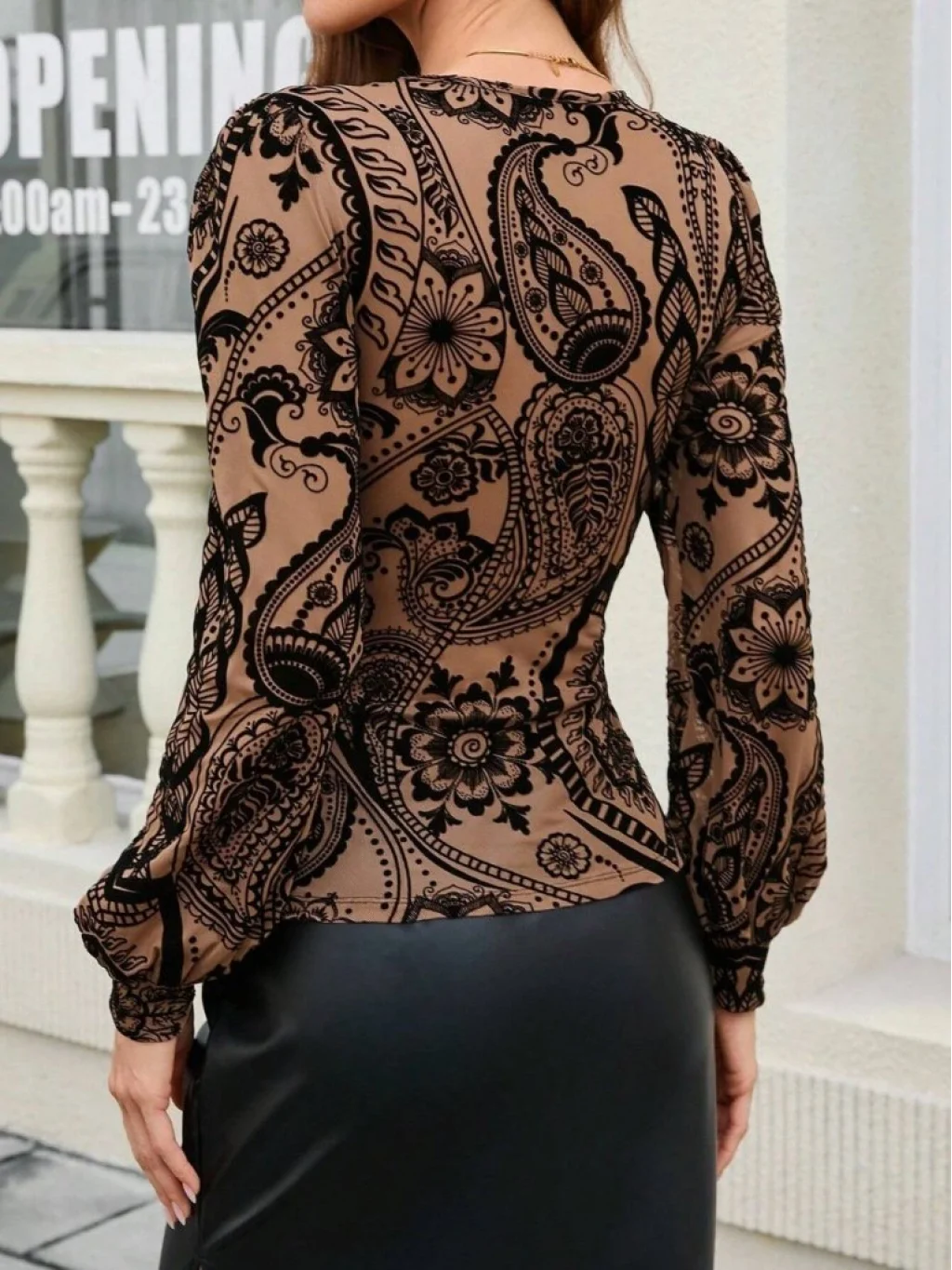 Kadın Uzun Kollu V Dantel Yakalı Modal Bluz