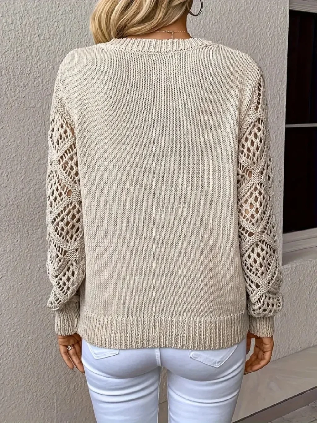 Kadın Uzun Kollu V Yaka Kol Delikli Baklava Desen Detaylı Triko Kazak