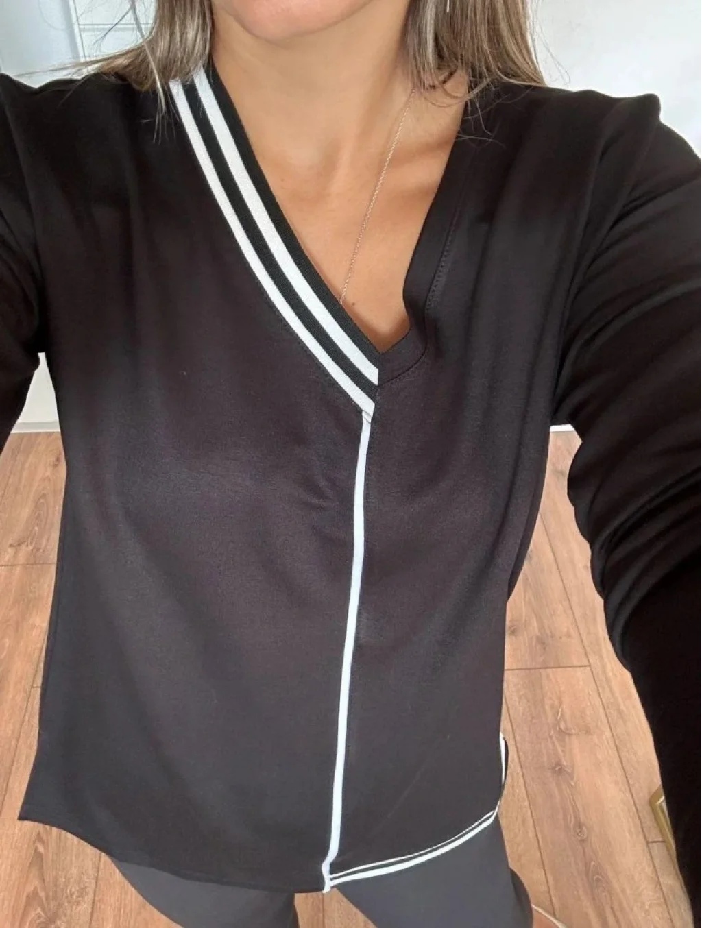 Kadın Uzun Kollu V Yaka Ribana Detay Kristal Kumaş Bluz