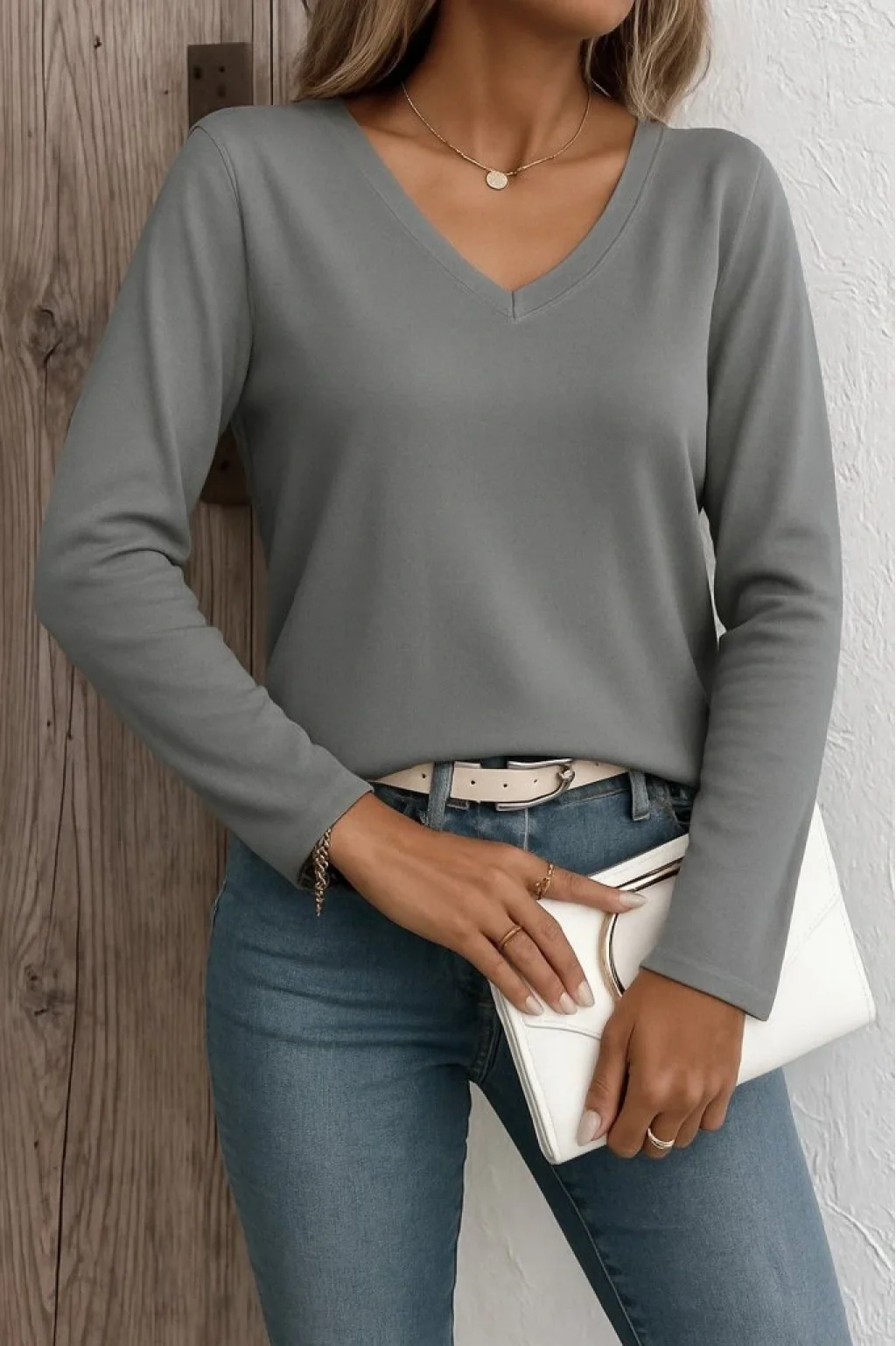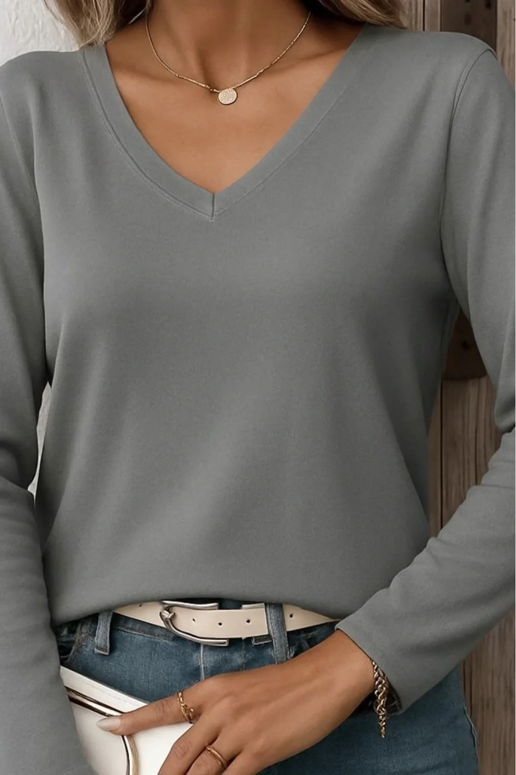 Kadın Uzun Kollu V Yaka Triko Bluz