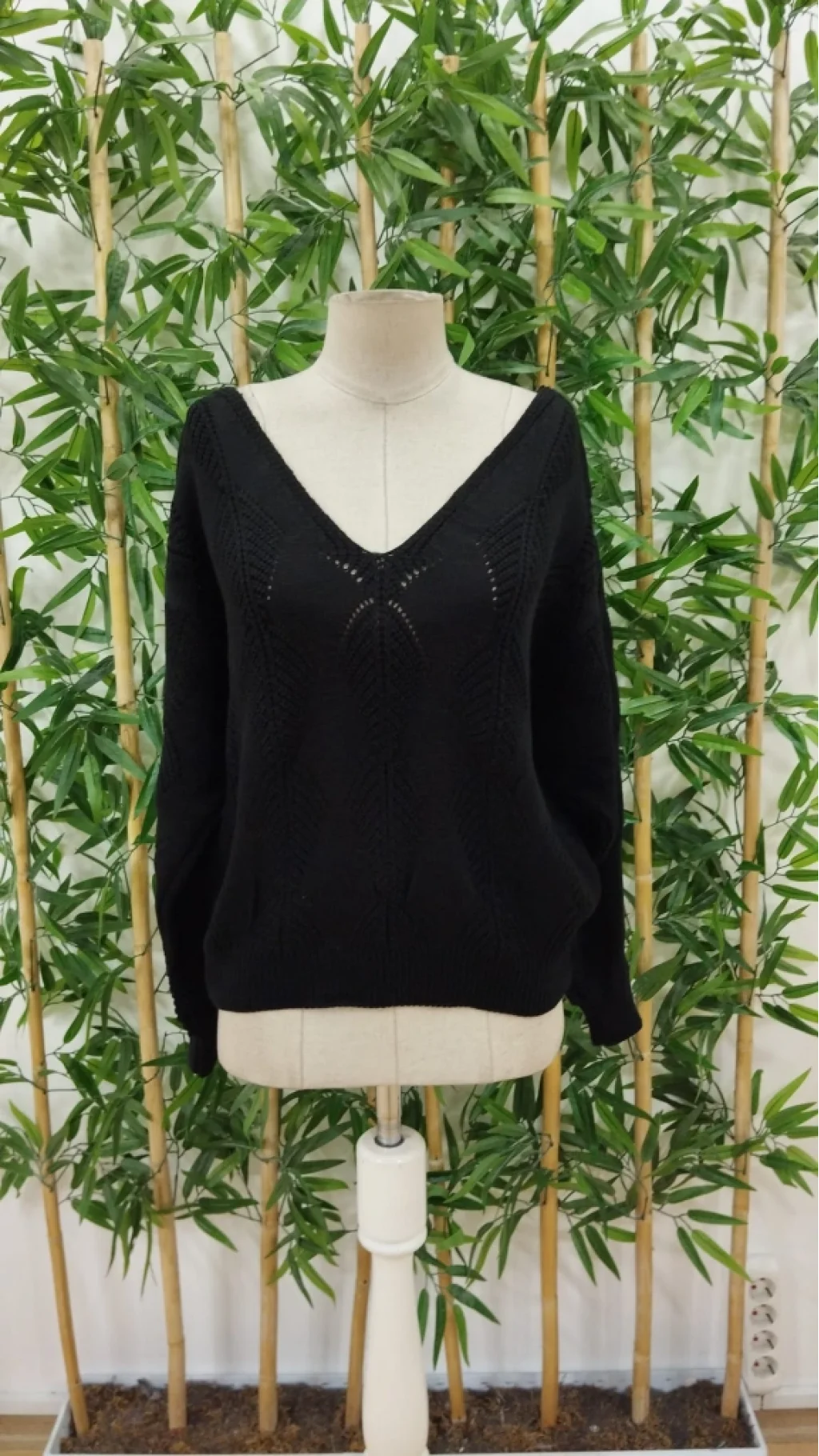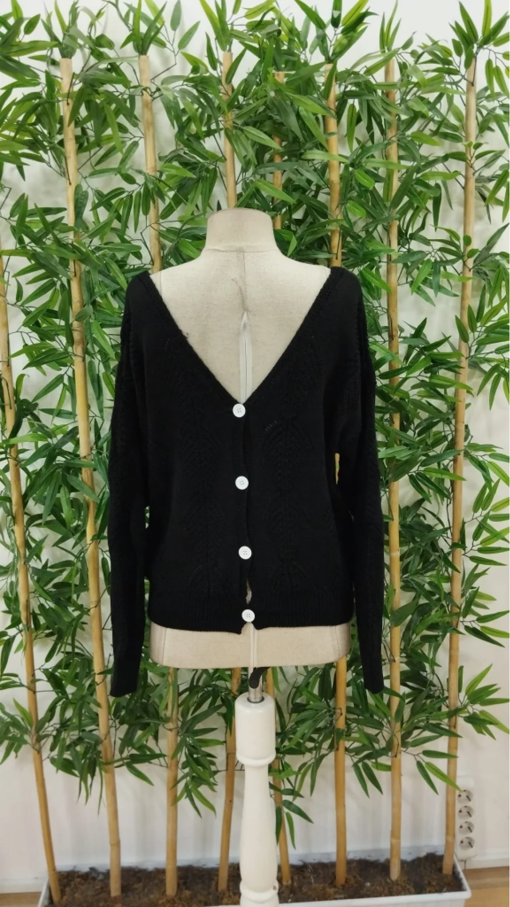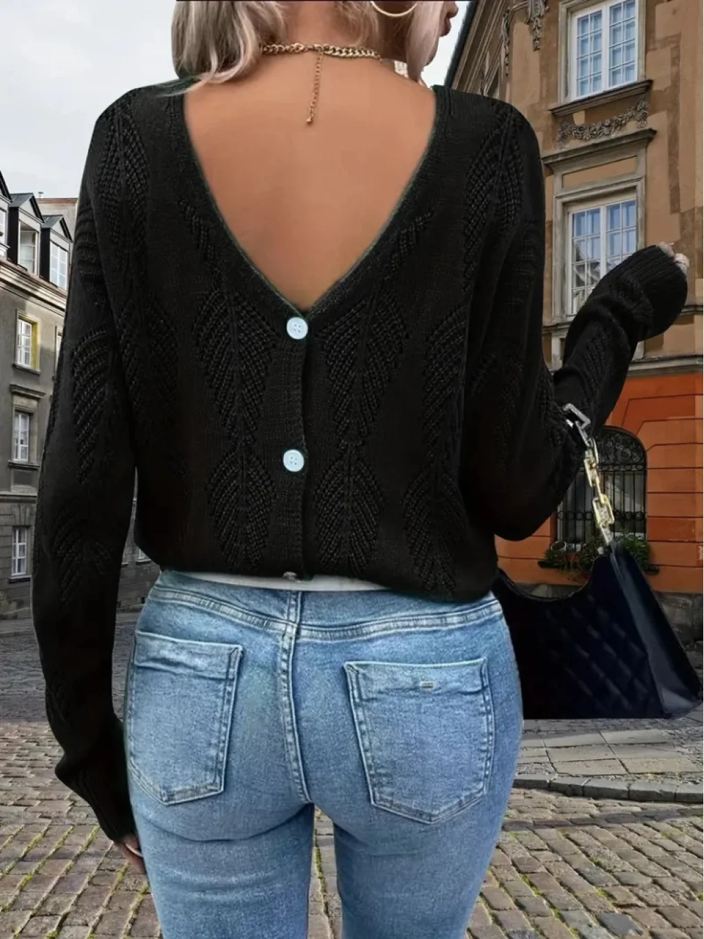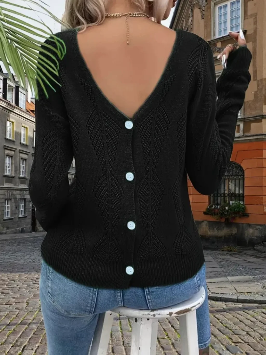 Kadın Uzun Kollu V Yakalı Arkası Düğmeli Triko Bluz