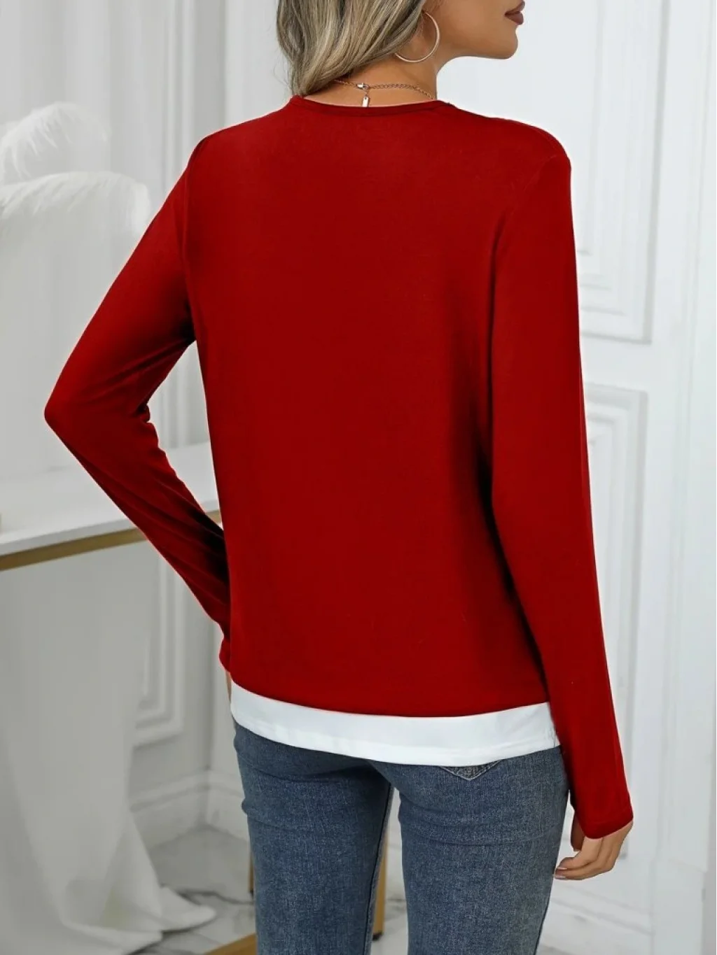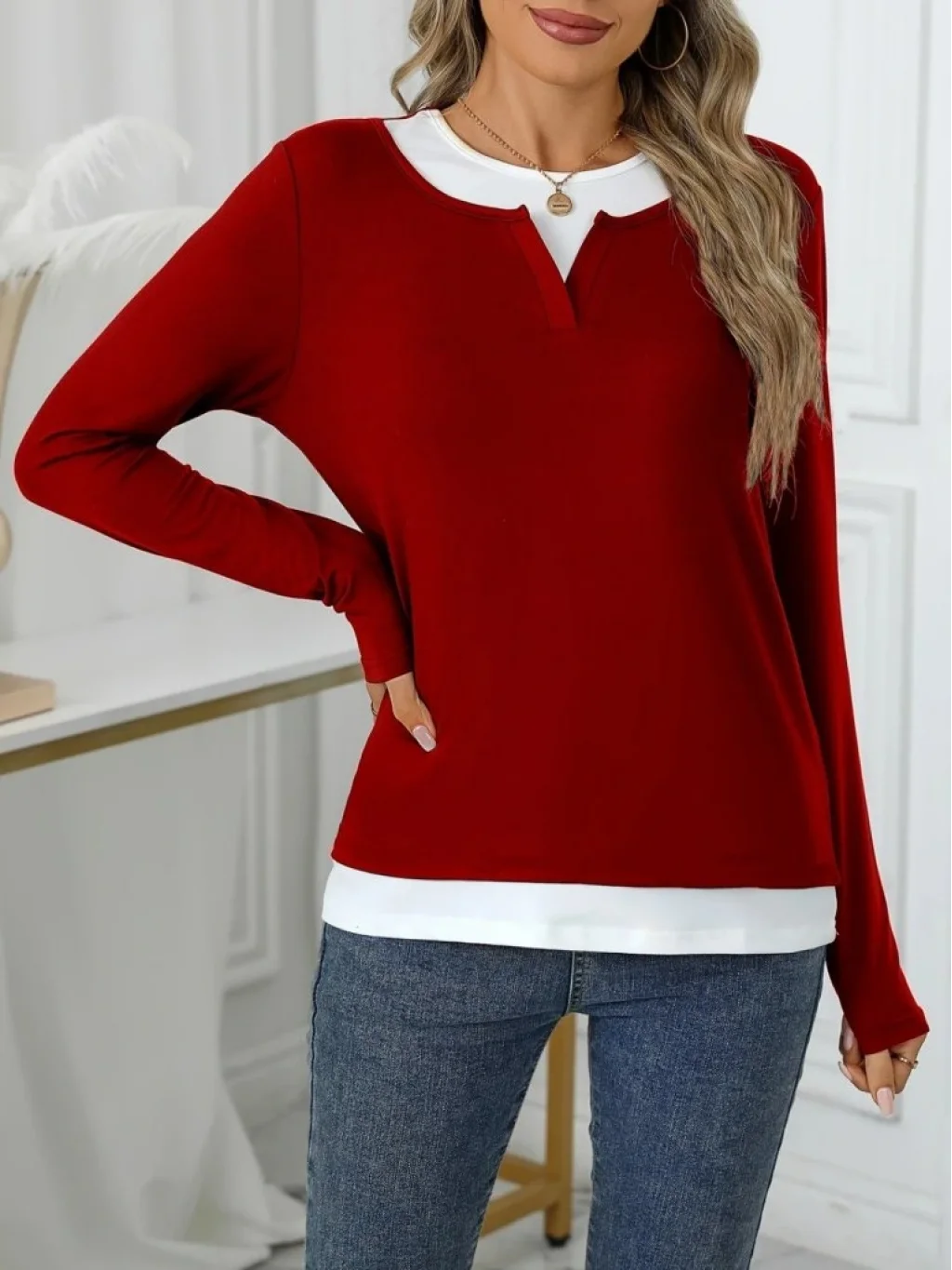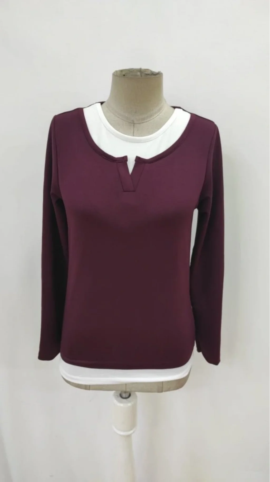 Kadın Uzun Kollu V Yakalı çift Renkli Viskon Iki Iplik Bluz