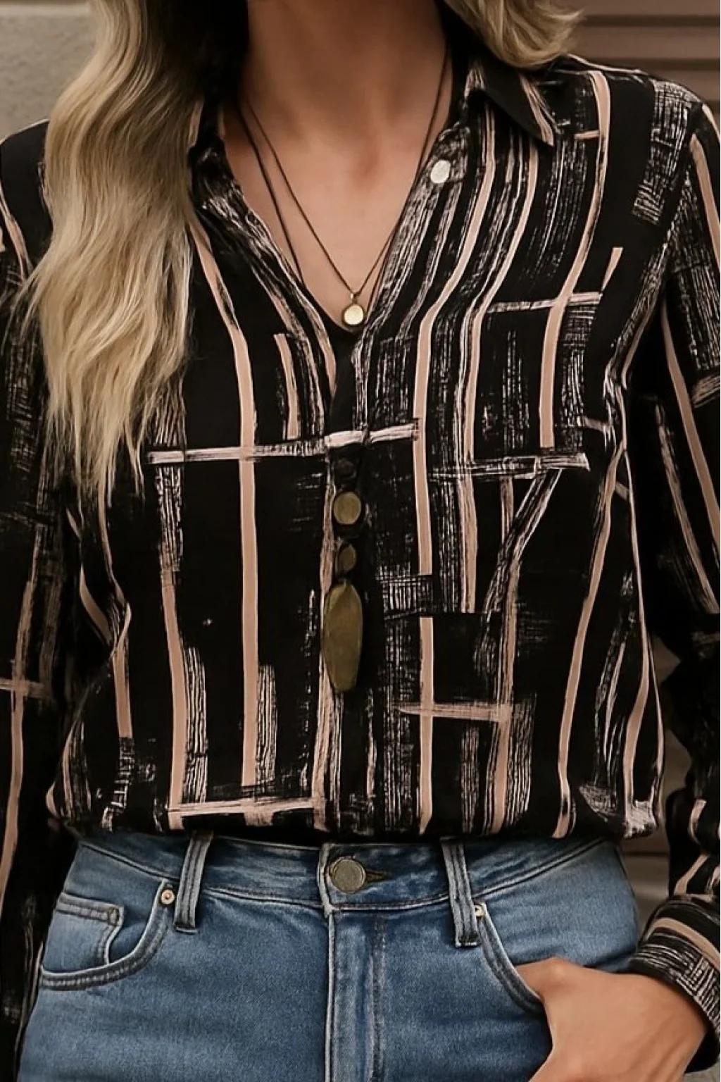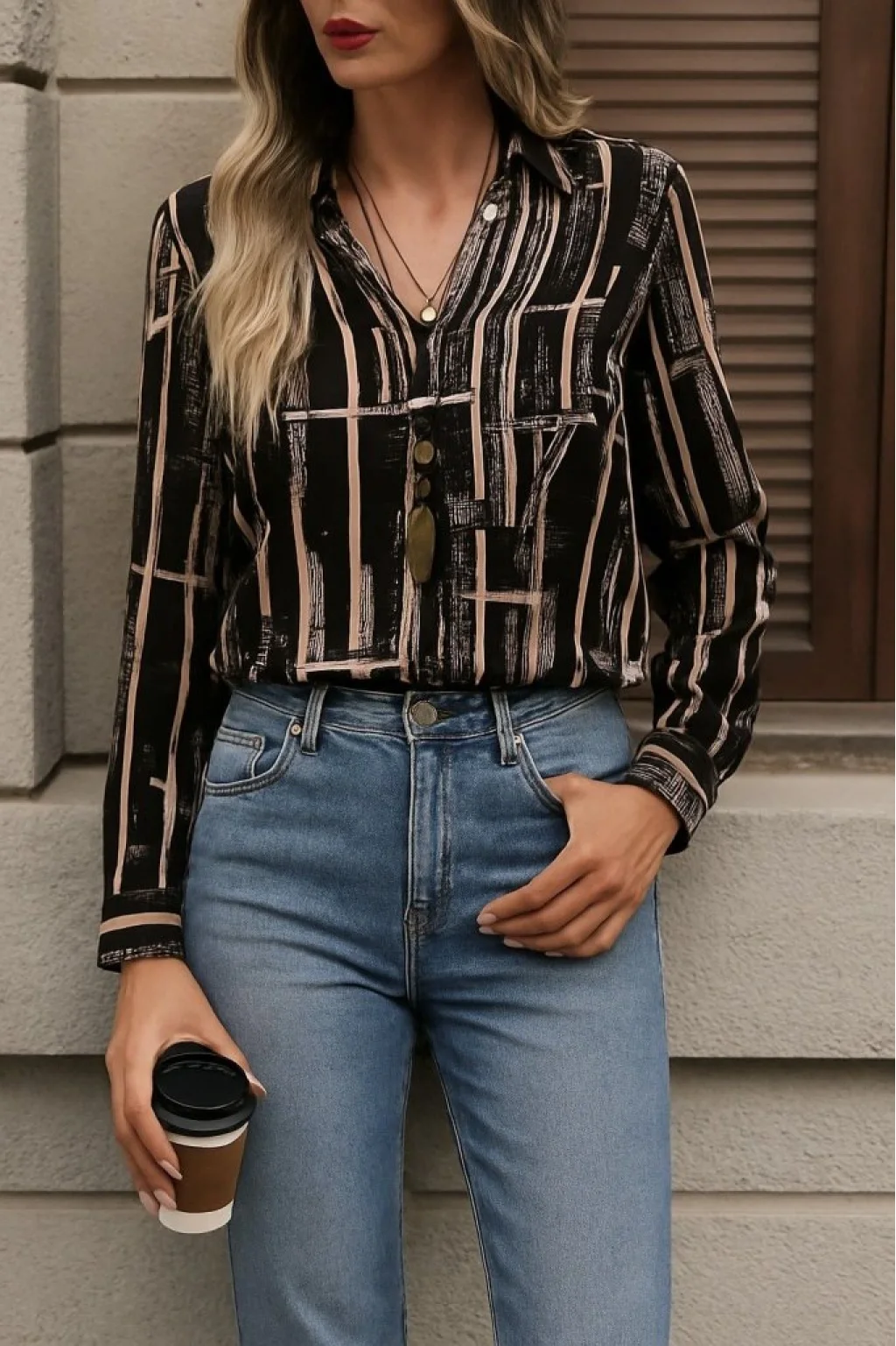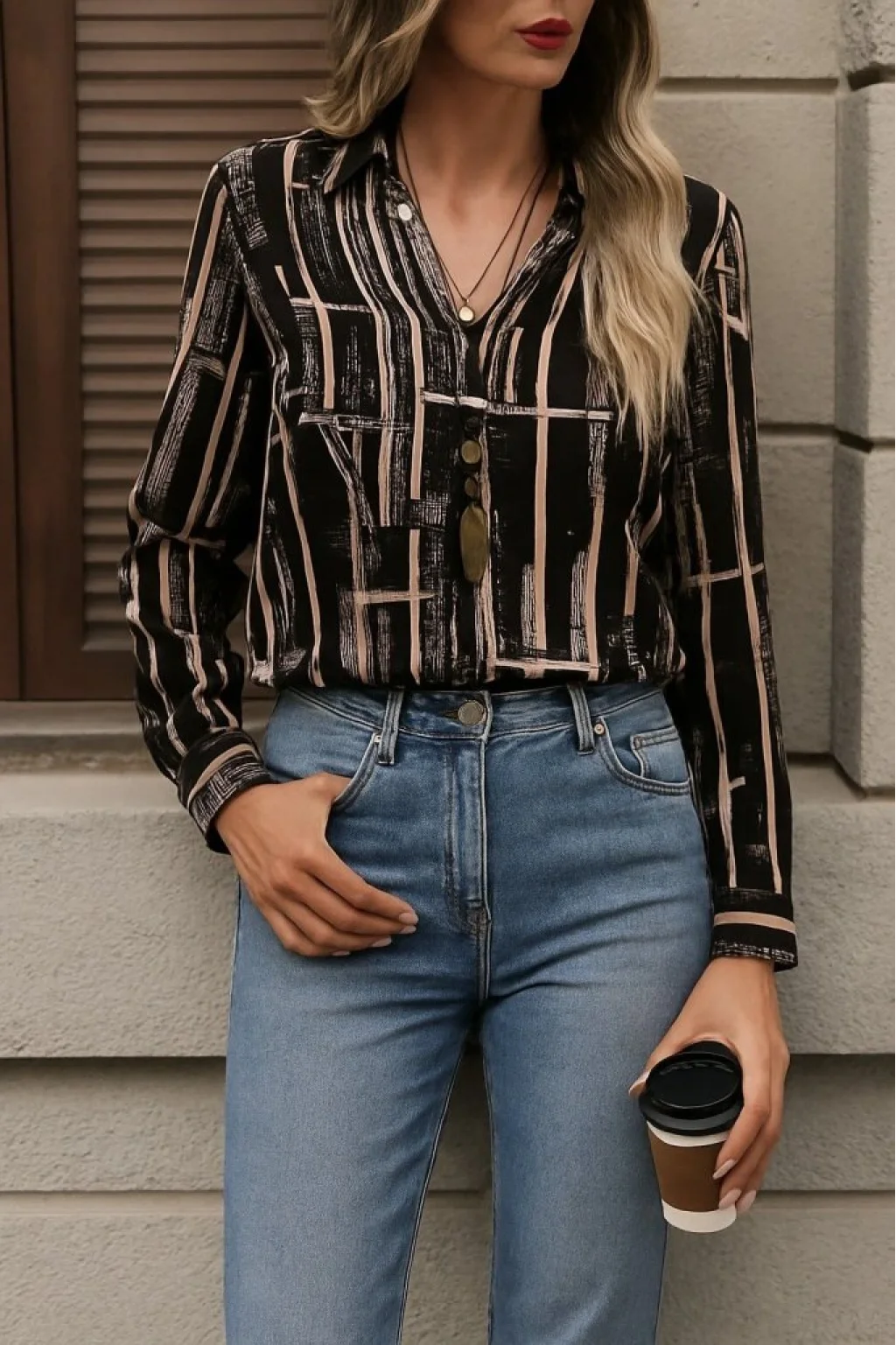 Kadın Uzun Kollu V Yakalı Desenli Dalgıç Bluz