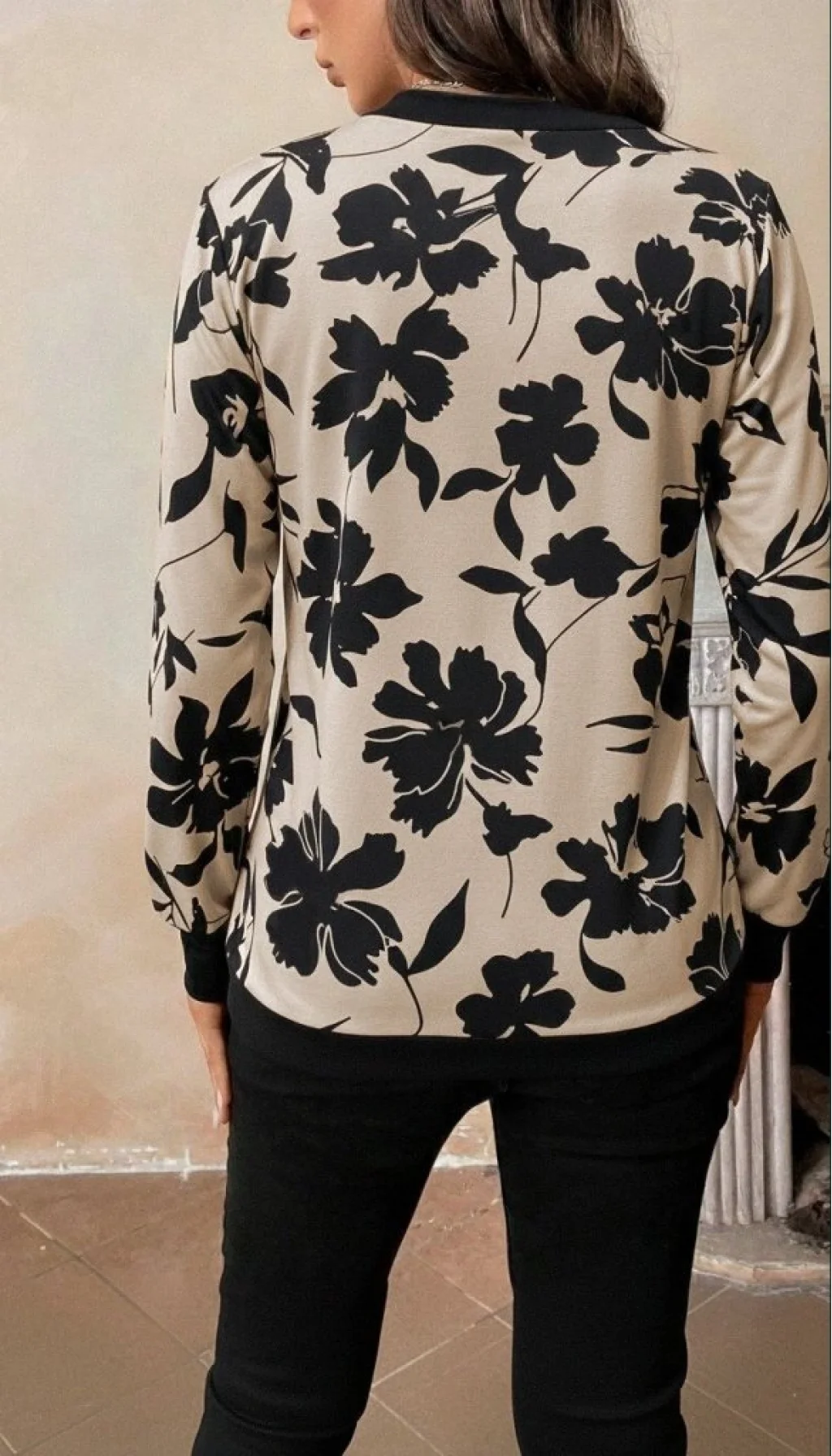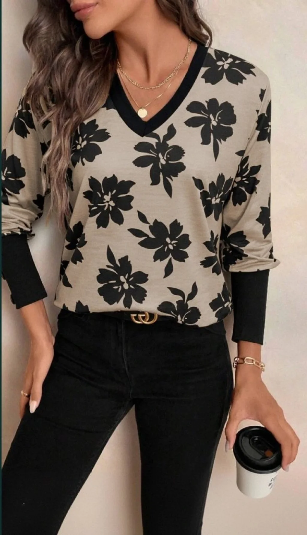 Kadın Uzun Kollu V Yakalı Desenli Süprem Bluz
