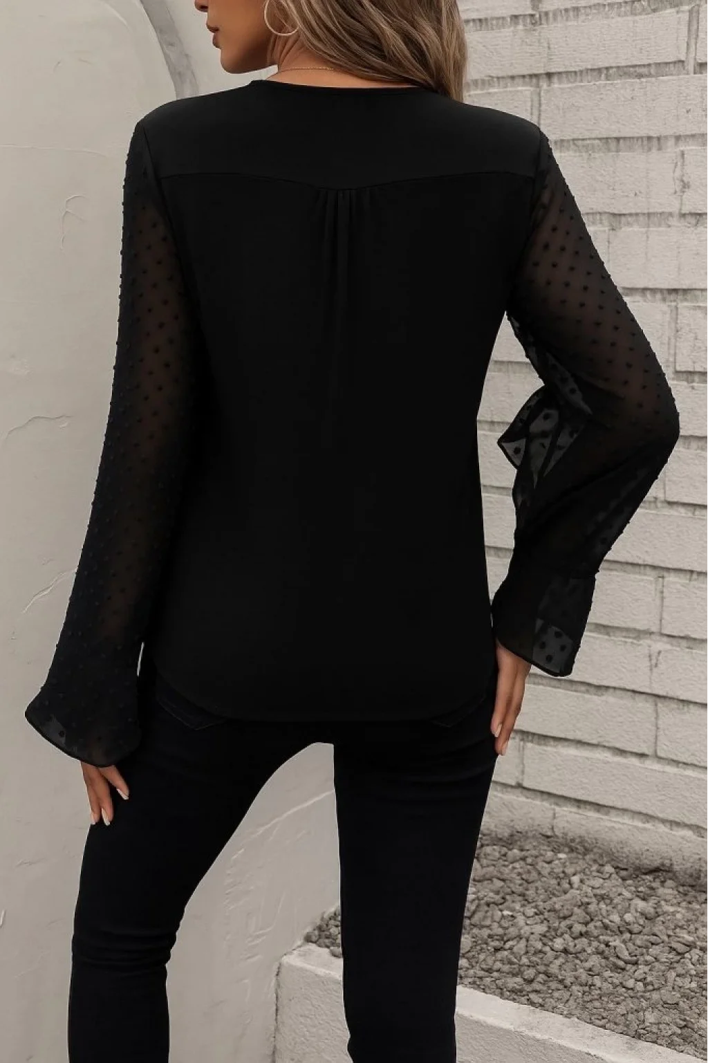 Kadın Uzun Kollu V Yakalı Kolları Ispanyol Detayı Sandy Bluz