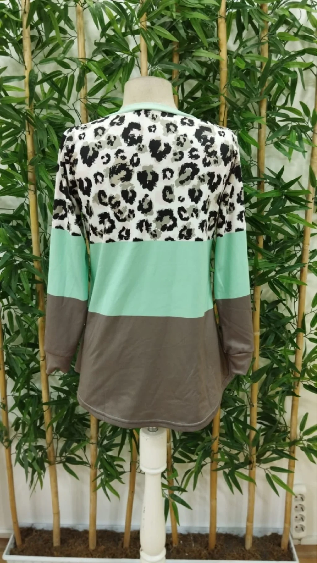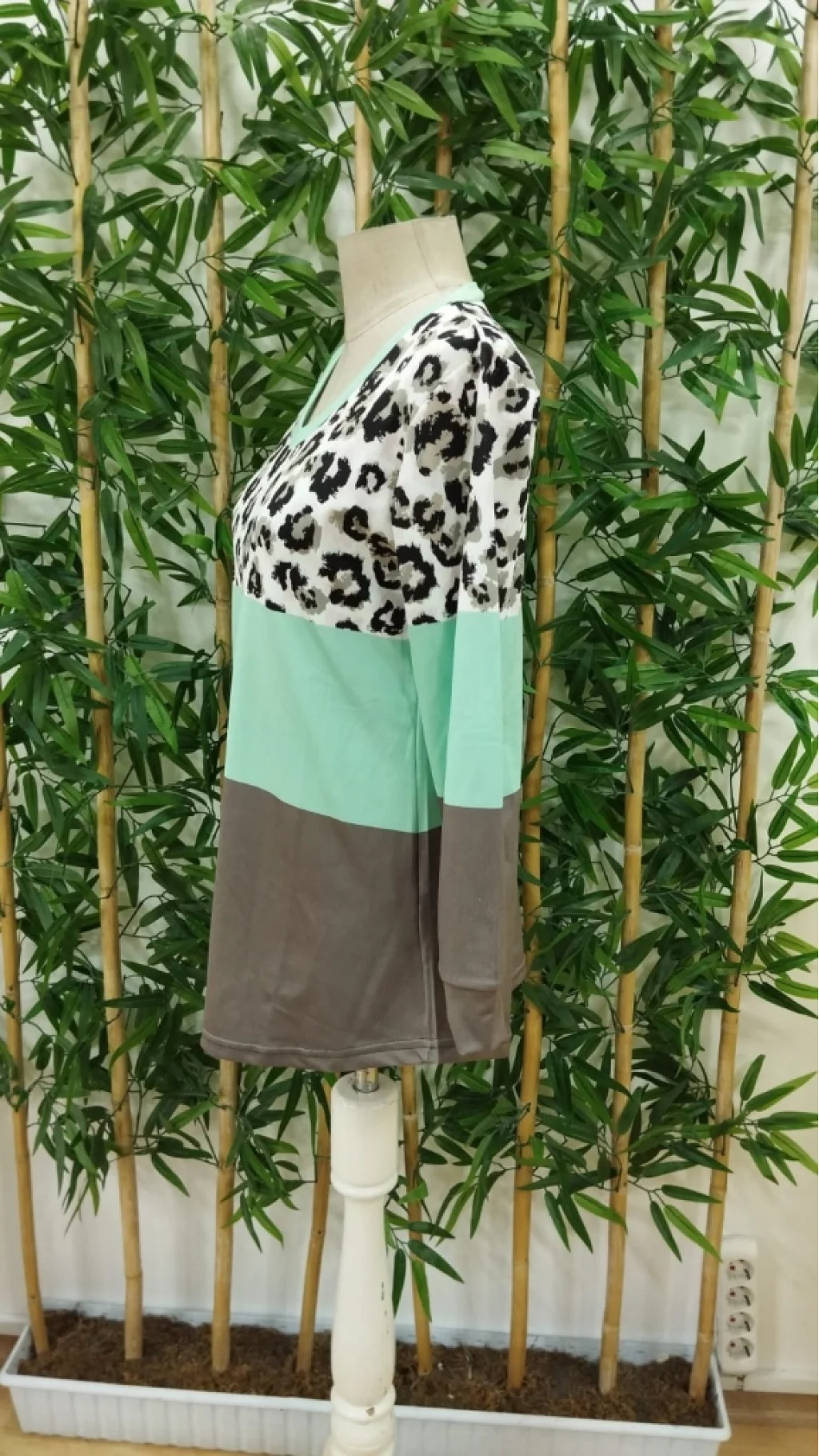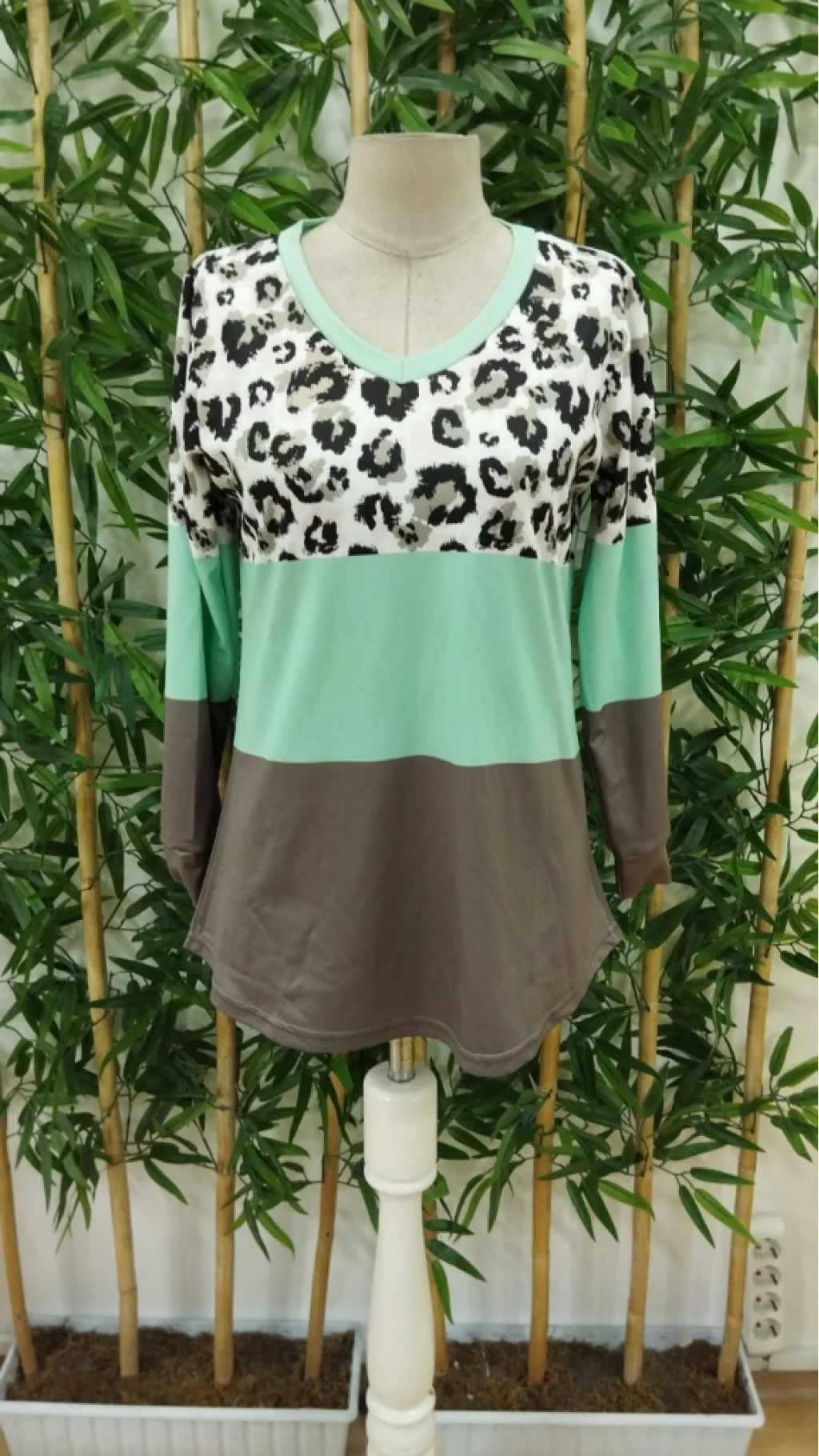 Kadın Uzun Kollu V Yakalı Leopar Baskılı şardonlu Dalgıç Bluz