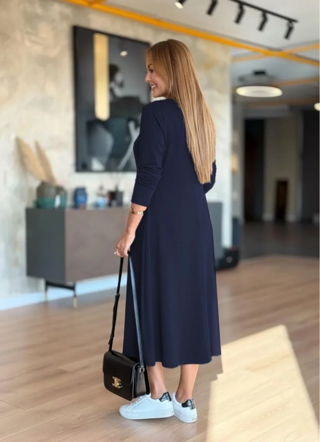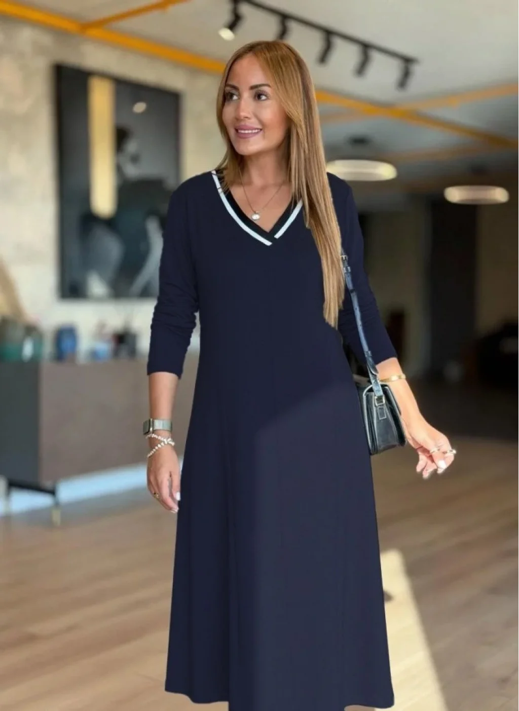 Kadın Uzun Kollu V Yakalı Midi Modal Elbise