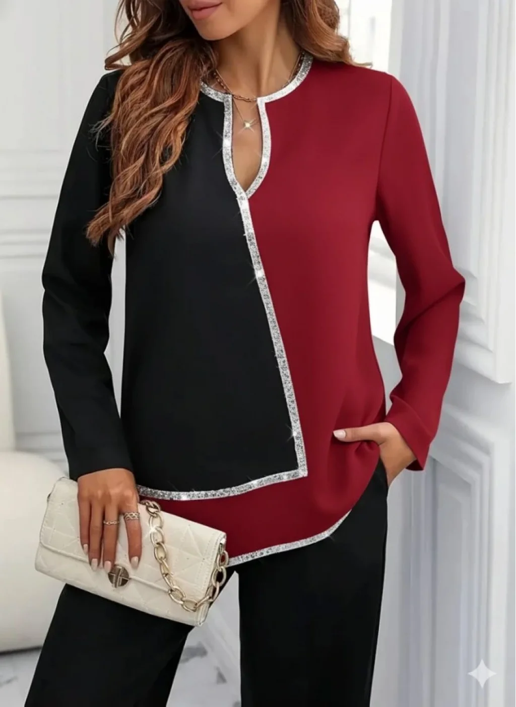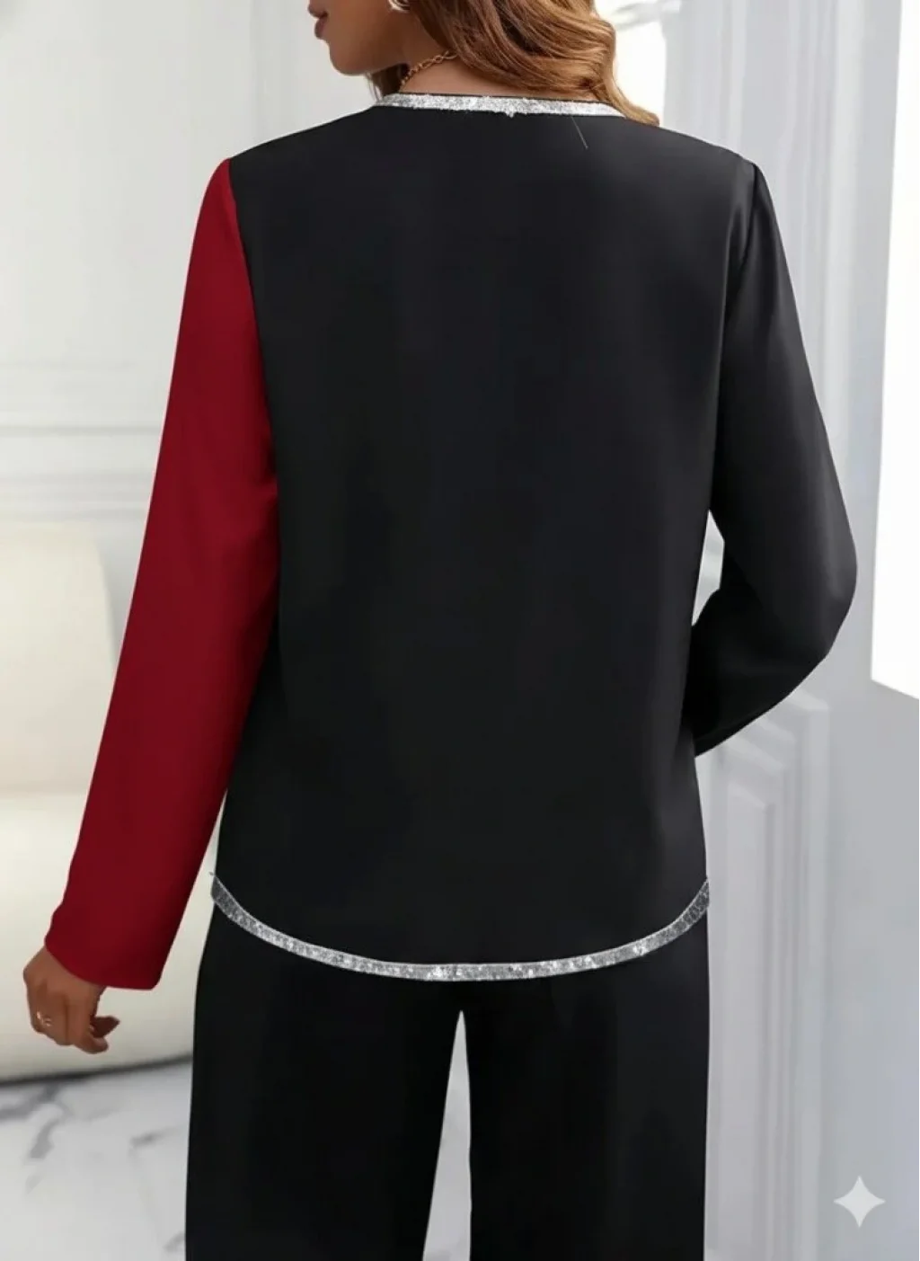 Kadın Uzun Kollu V Yakalı Pul Payet Işlemeli Ithal Krep Bluz