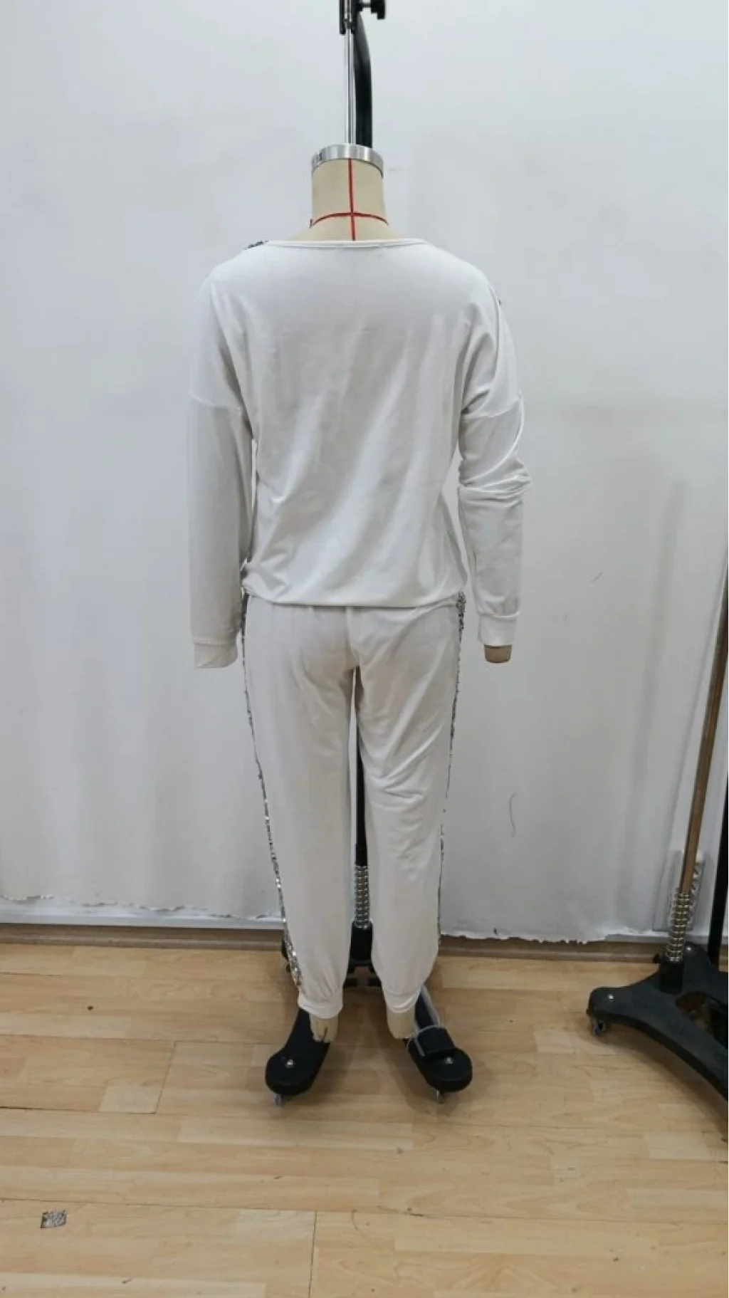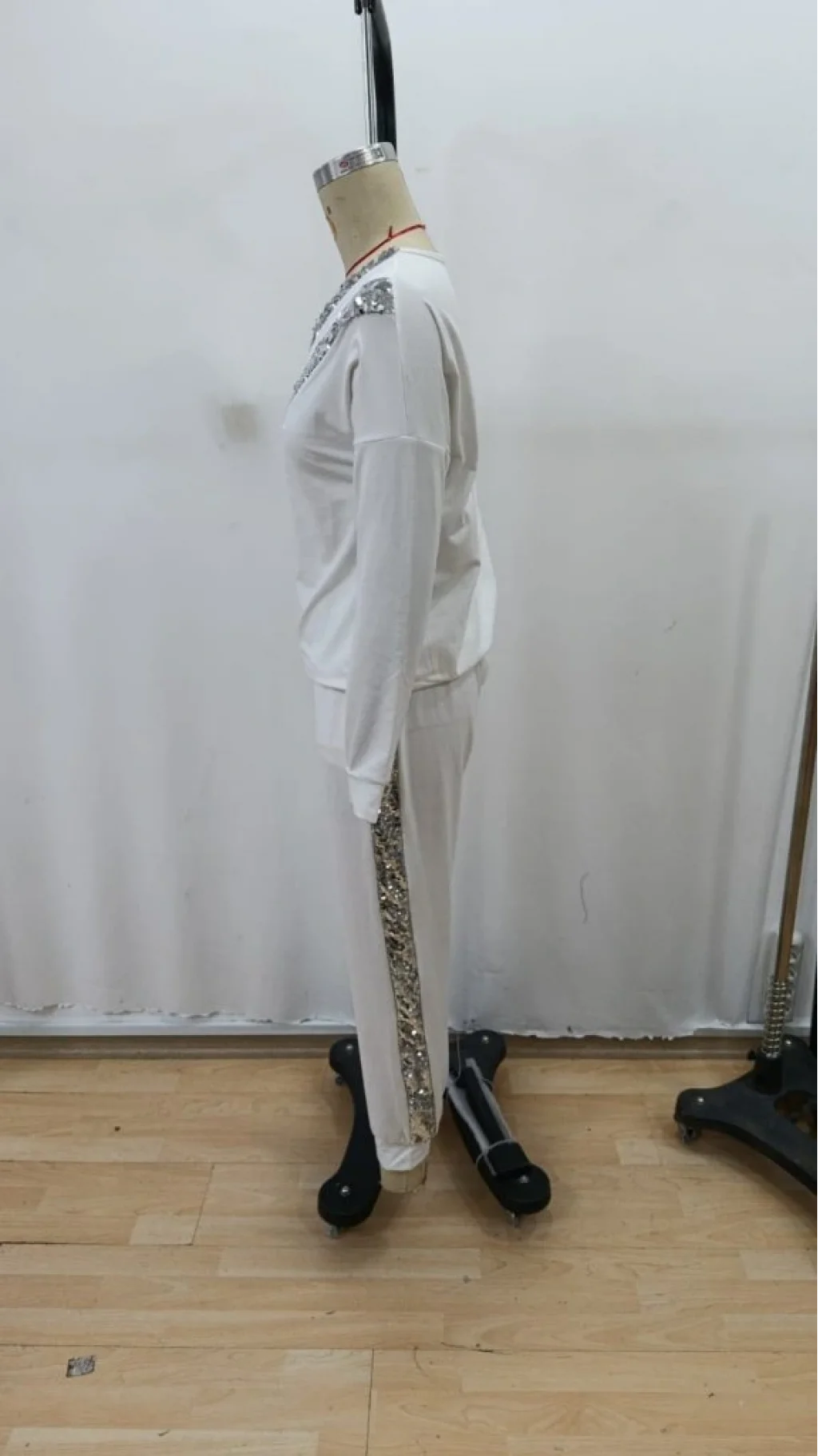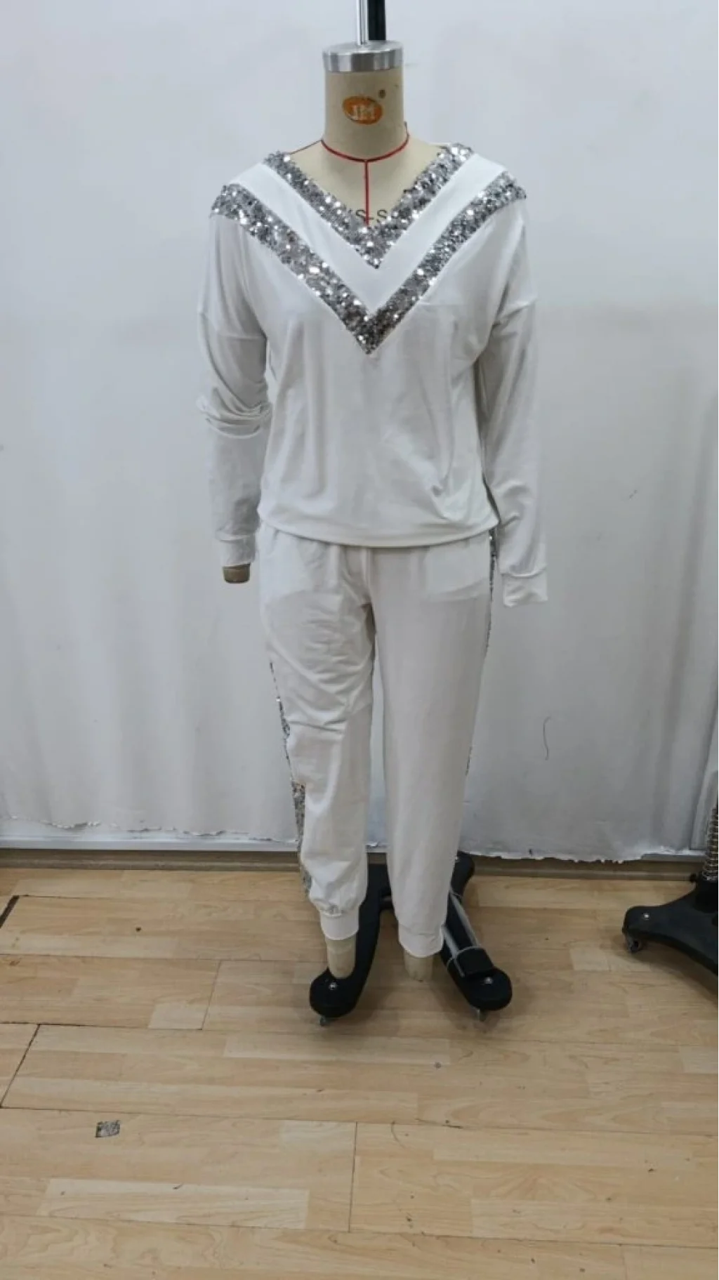 Kadın Uzun Kollu V Yakalı Pulpayetli Viskon Iki Iplik Bluz Ve Pantolon