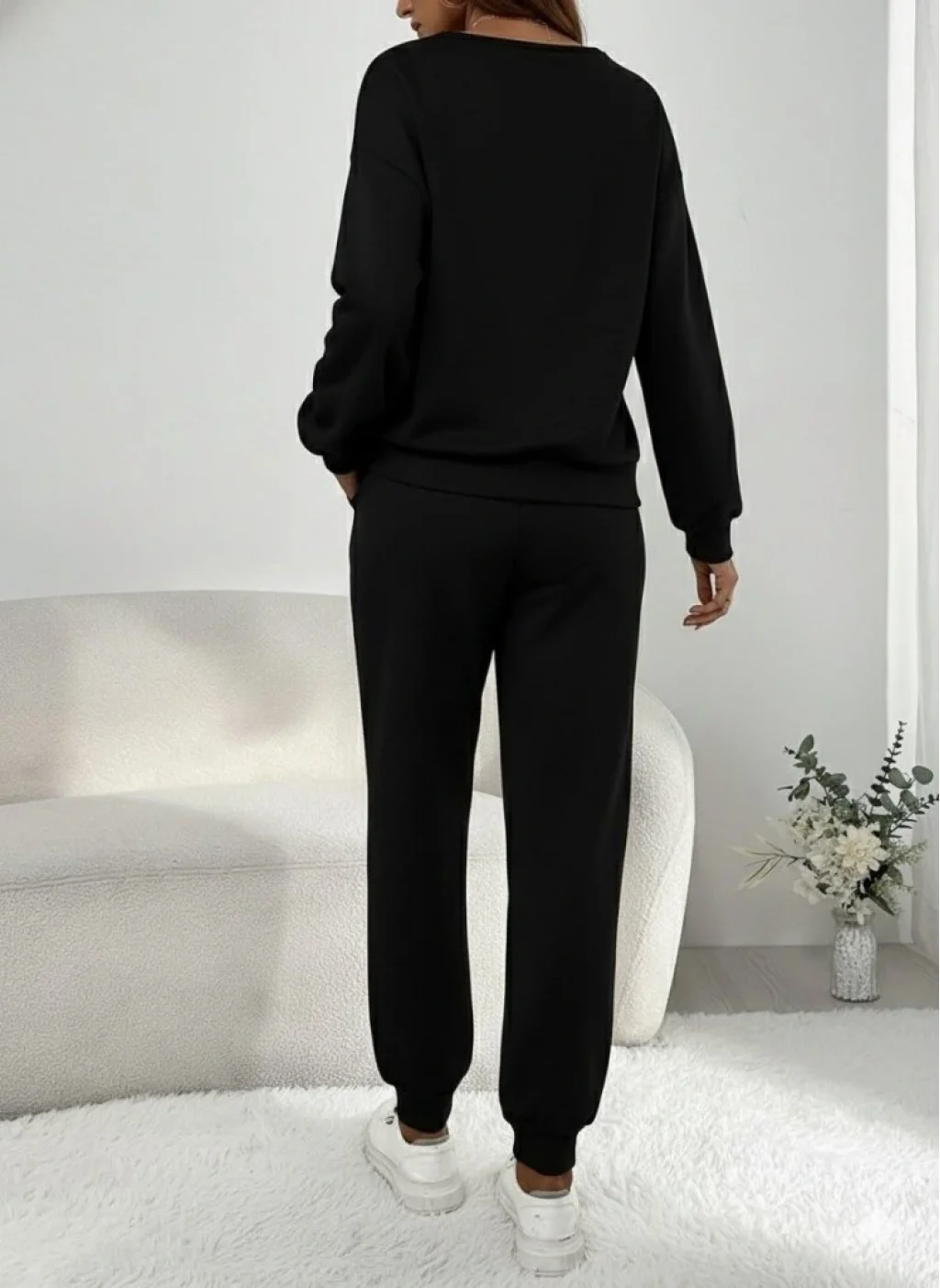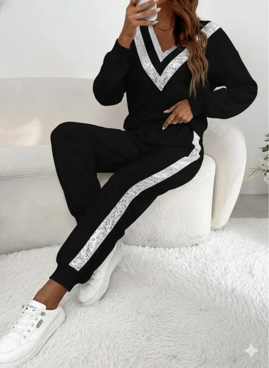 Kadın Uzun Kollu V Yakalı Pulpayetli Viskon Iki Iplik Bluz Ve Pantolon