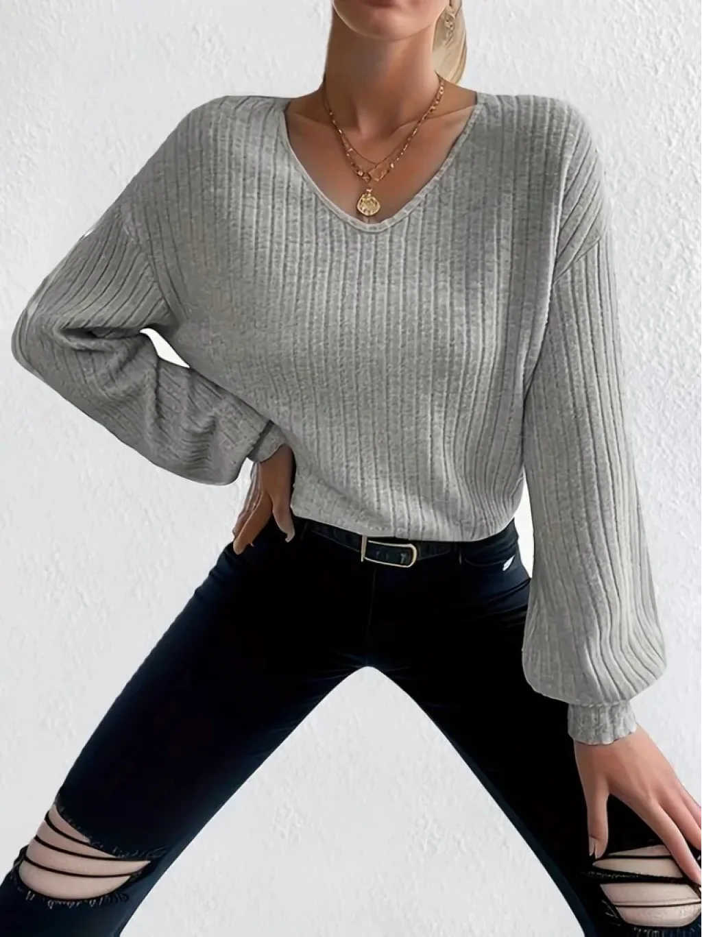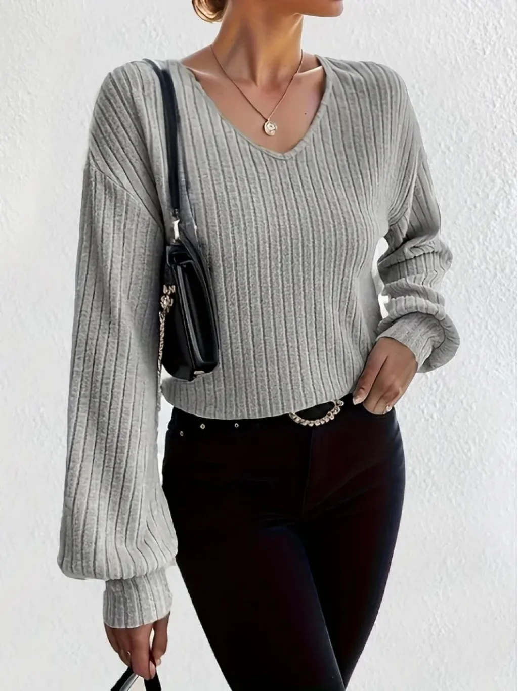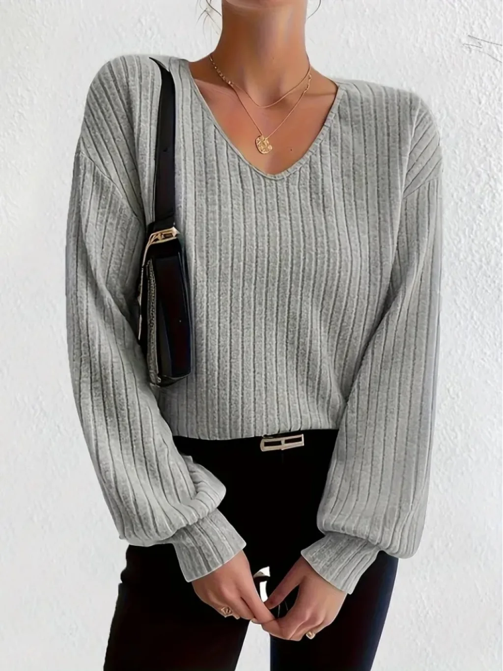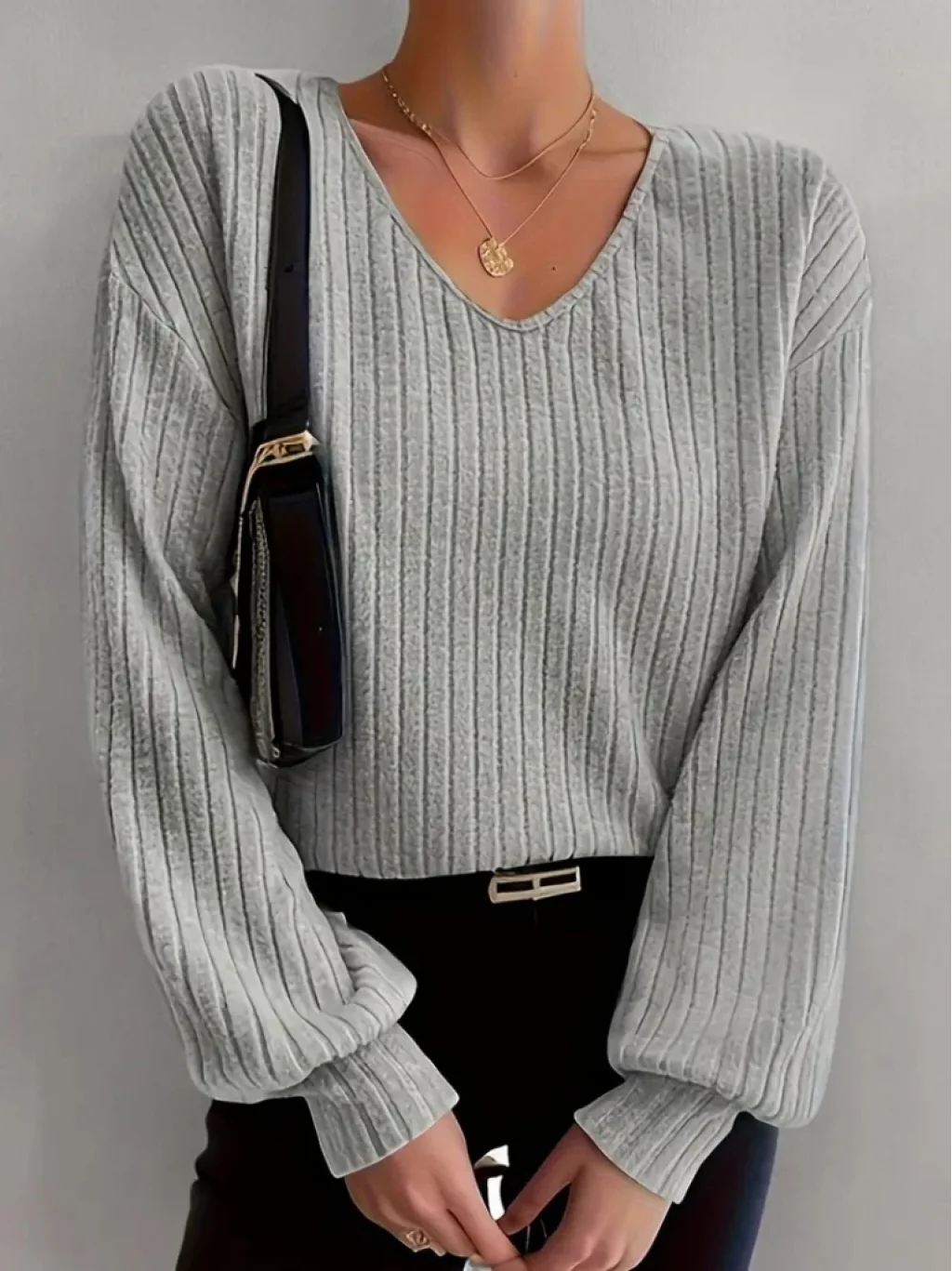 Kadın Uzun Kollu V Yakalı Salaş şardonlu Kaşkorse Bluz