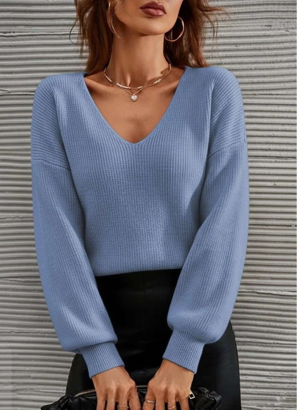 Kadın Uzun Kollu V Yakalı Triko Bluz