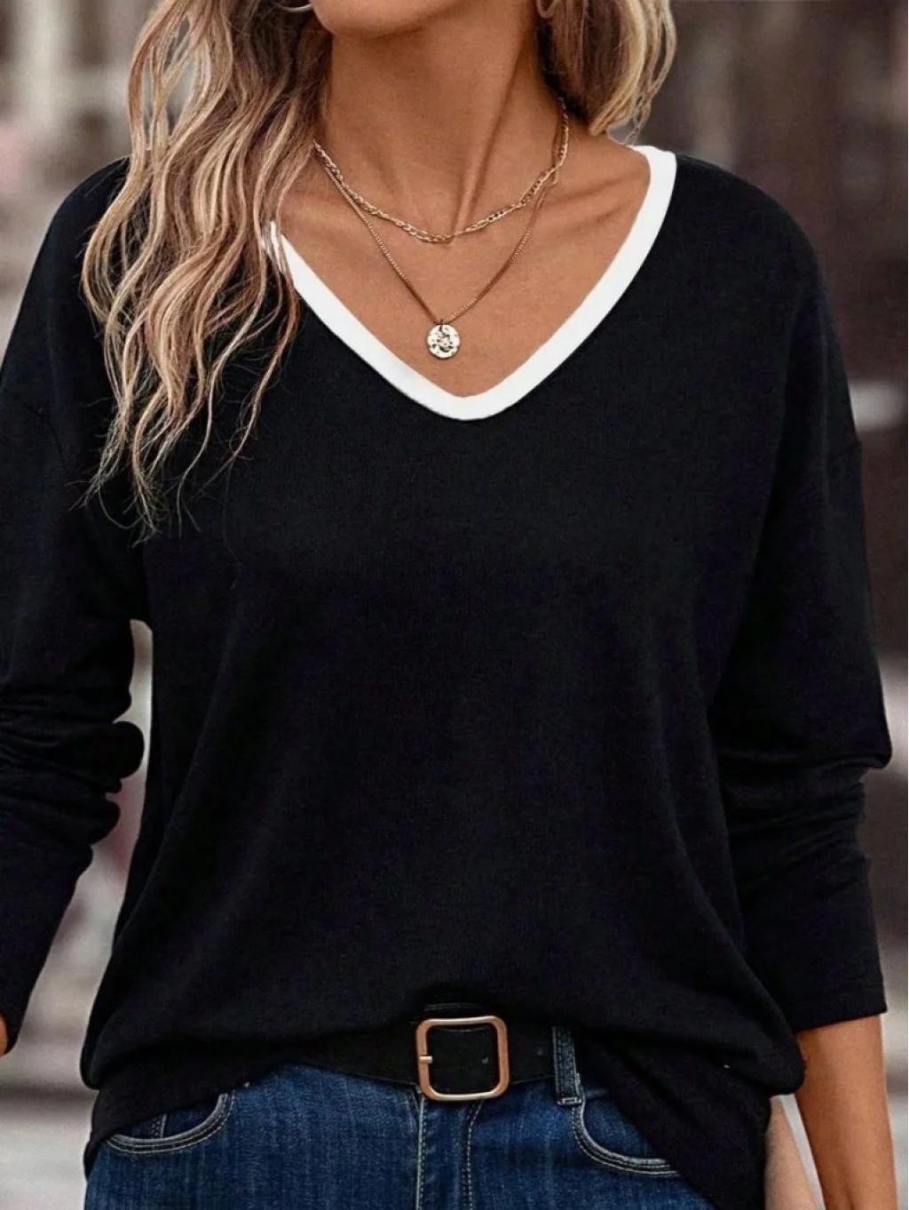 Kadın Uzun Kollu V Yakalı Viskon Iki Iplik Bluz