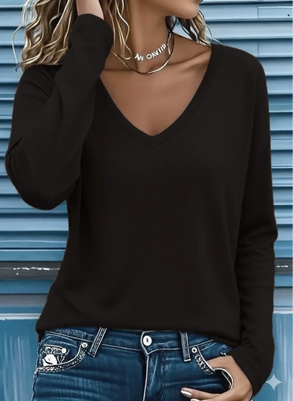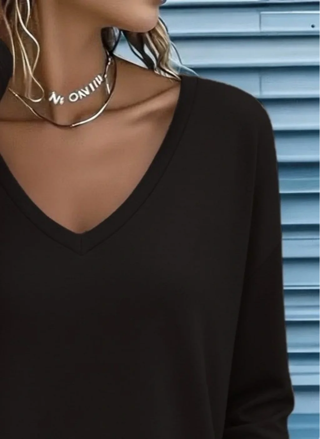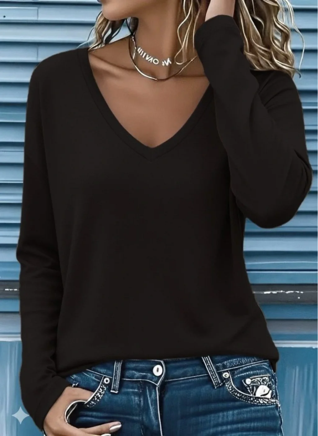 Kadın Uzun Kollu V Yakalı Viskon Iki Iplik Bluz