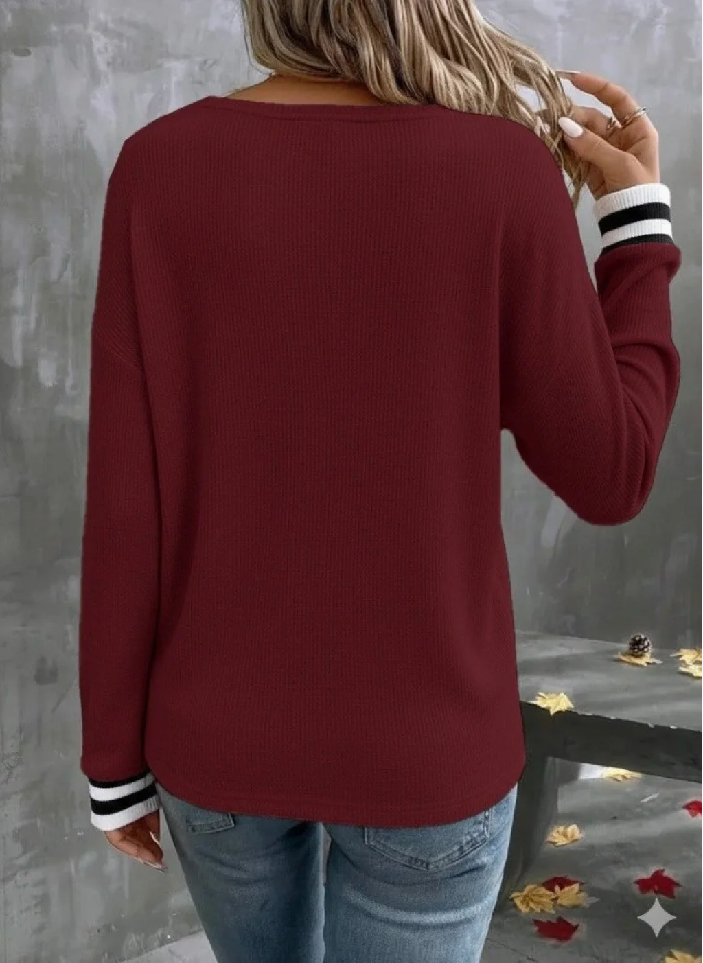 Kadın Uzun Kollu V Yakalı Waffle Bluz