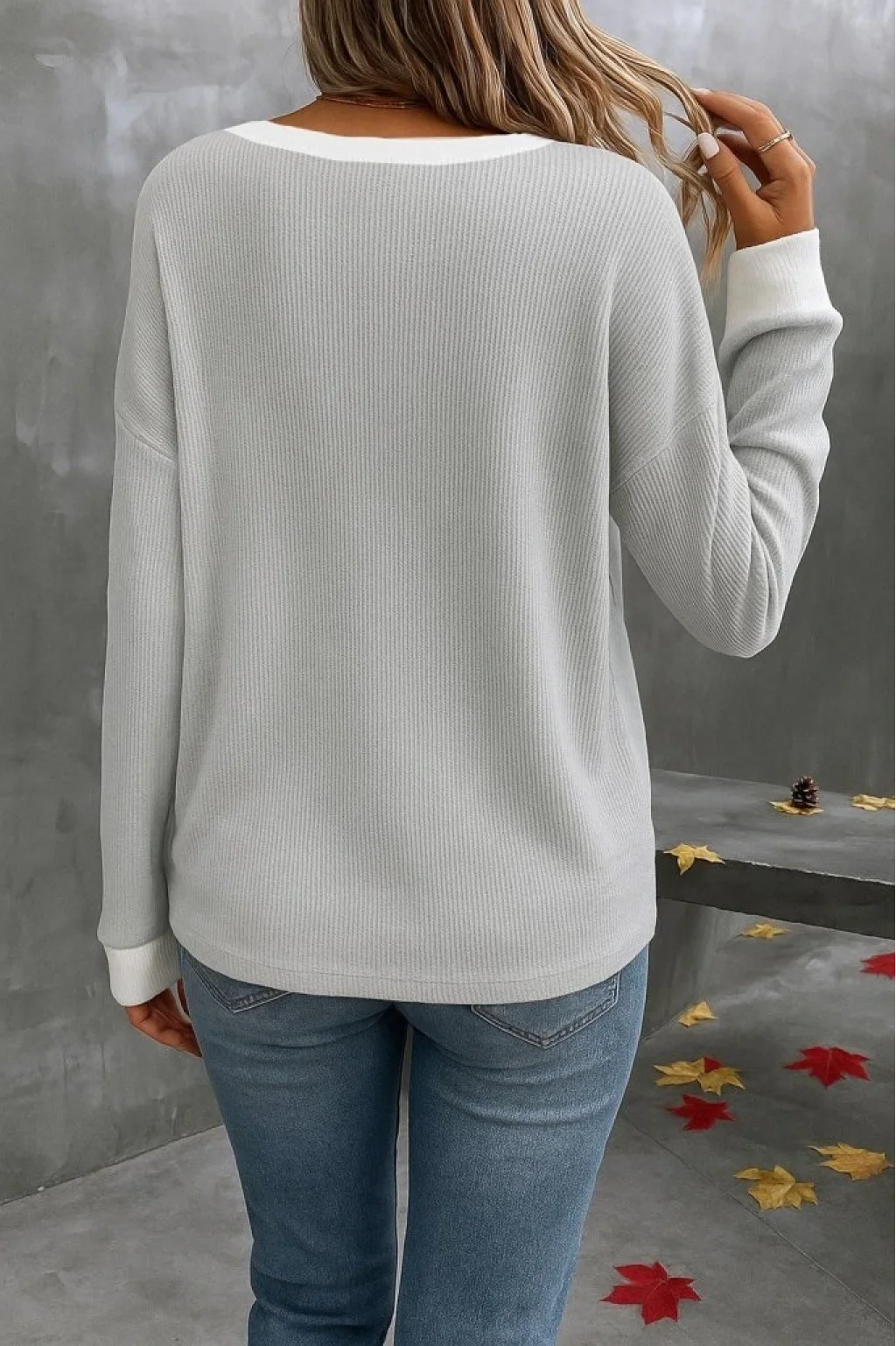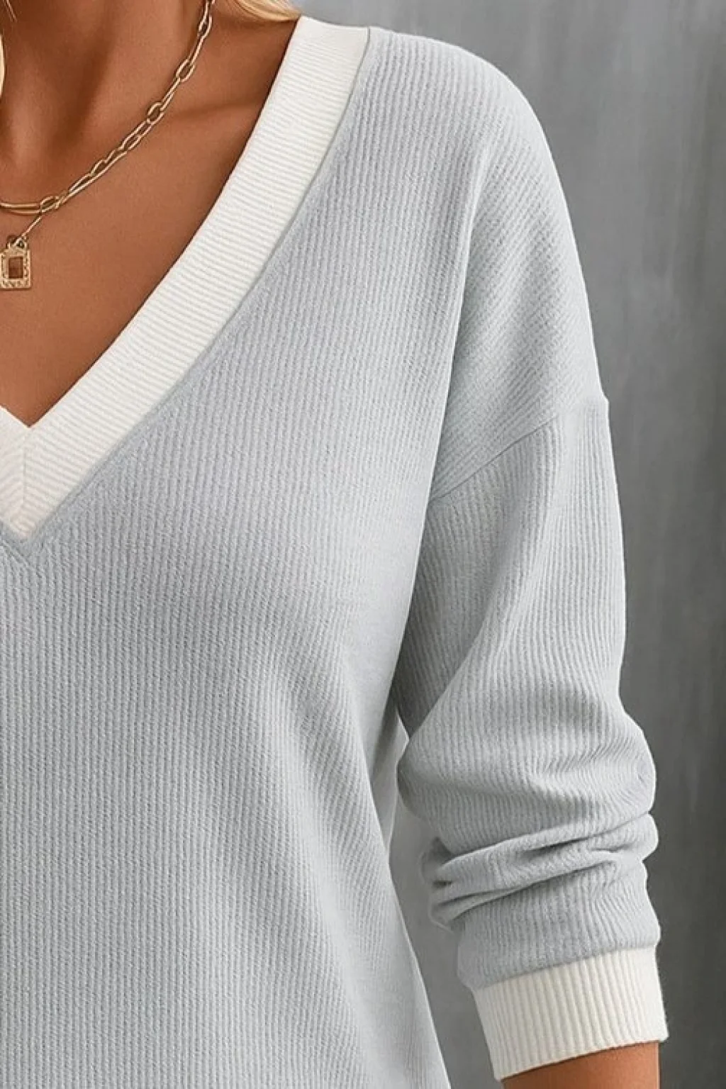 Kadın Uzun Kollu V Yakalı Waffle Bluz