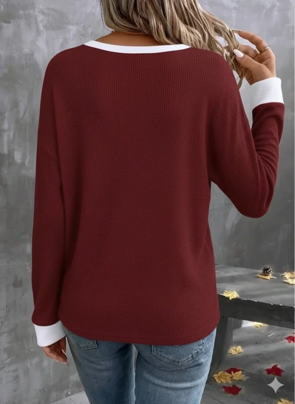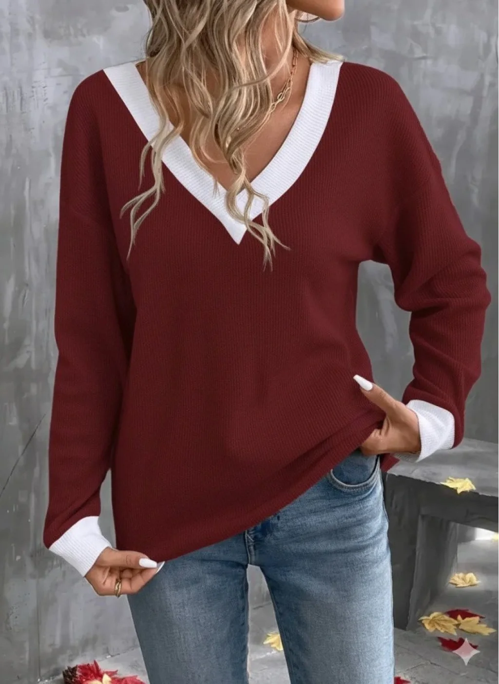 Kadın Uzun Kollu V Yakalı Waffle Bluz