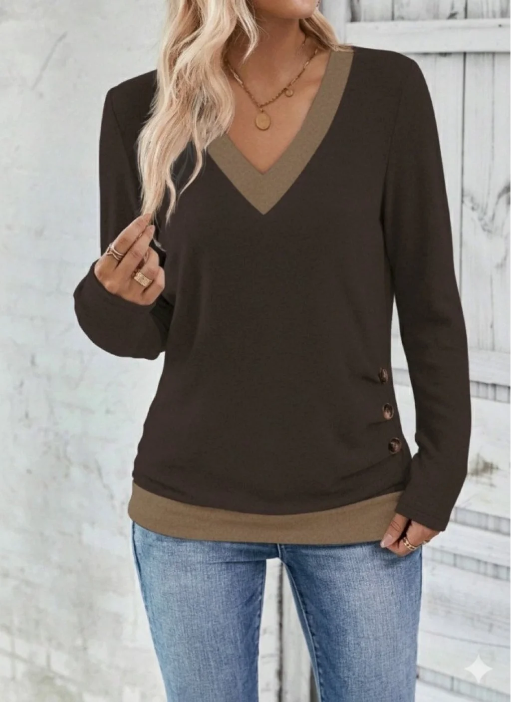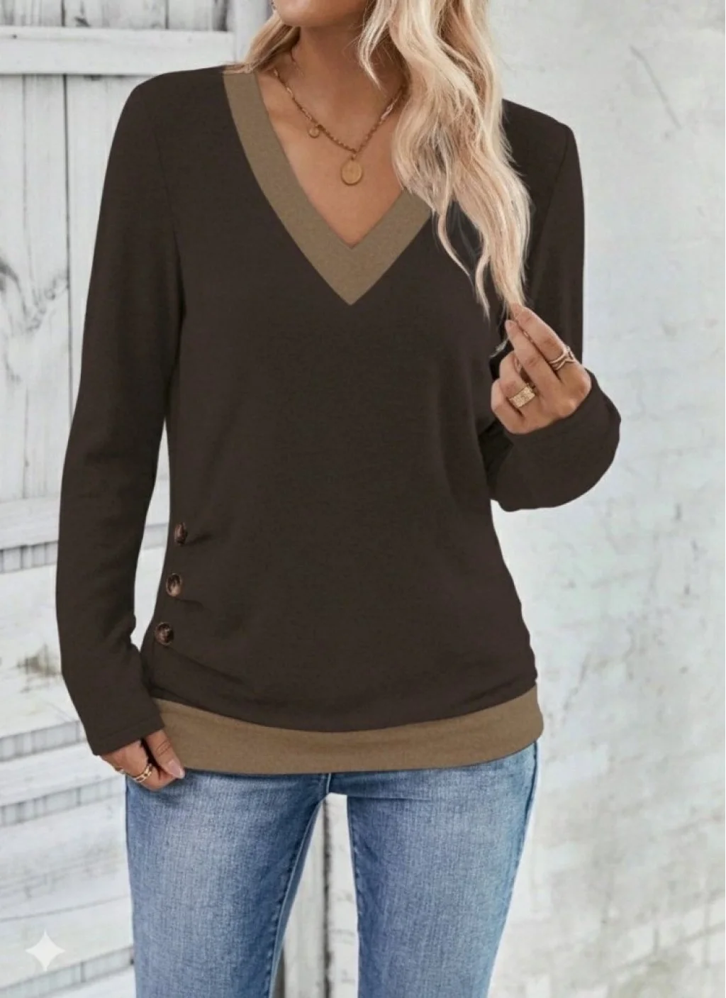 Kadın Uzun Kollu V Yakalı Yandan Düğmeli Yün Viskon Bluz