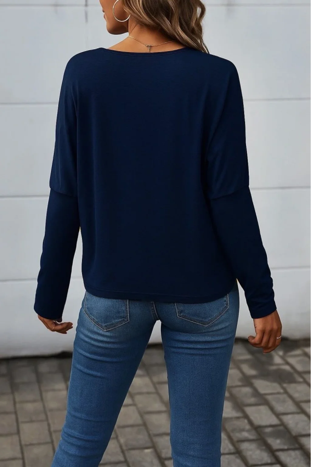 Kadın Uzun Kollu V Yakalı Yarasa Kollu Viskon Bluz