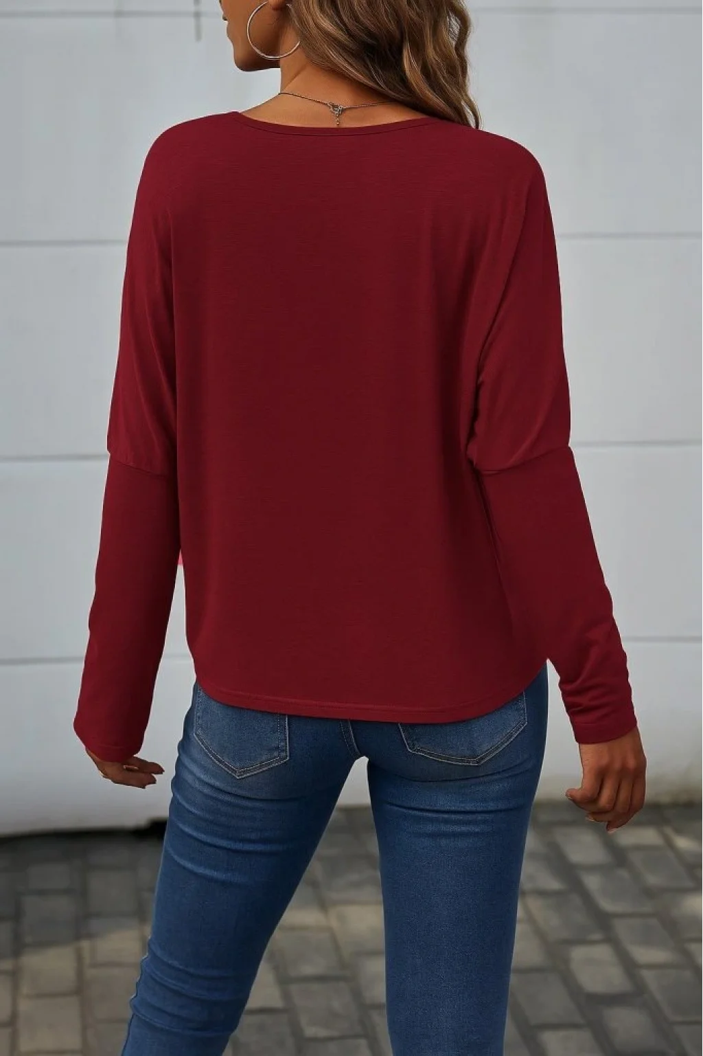 Kadın Uzun Kollu V Yakalı Yarasa Kollu Viskon Bluz
