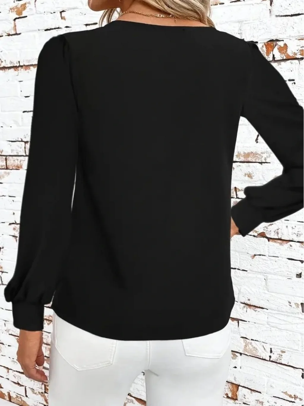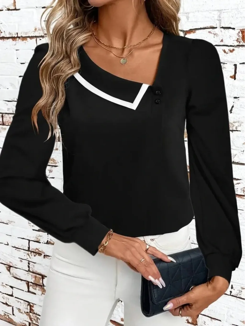 Kadın Uzun Kollu Yaka Detaylı Düğmeli Ithal Krep Bluz