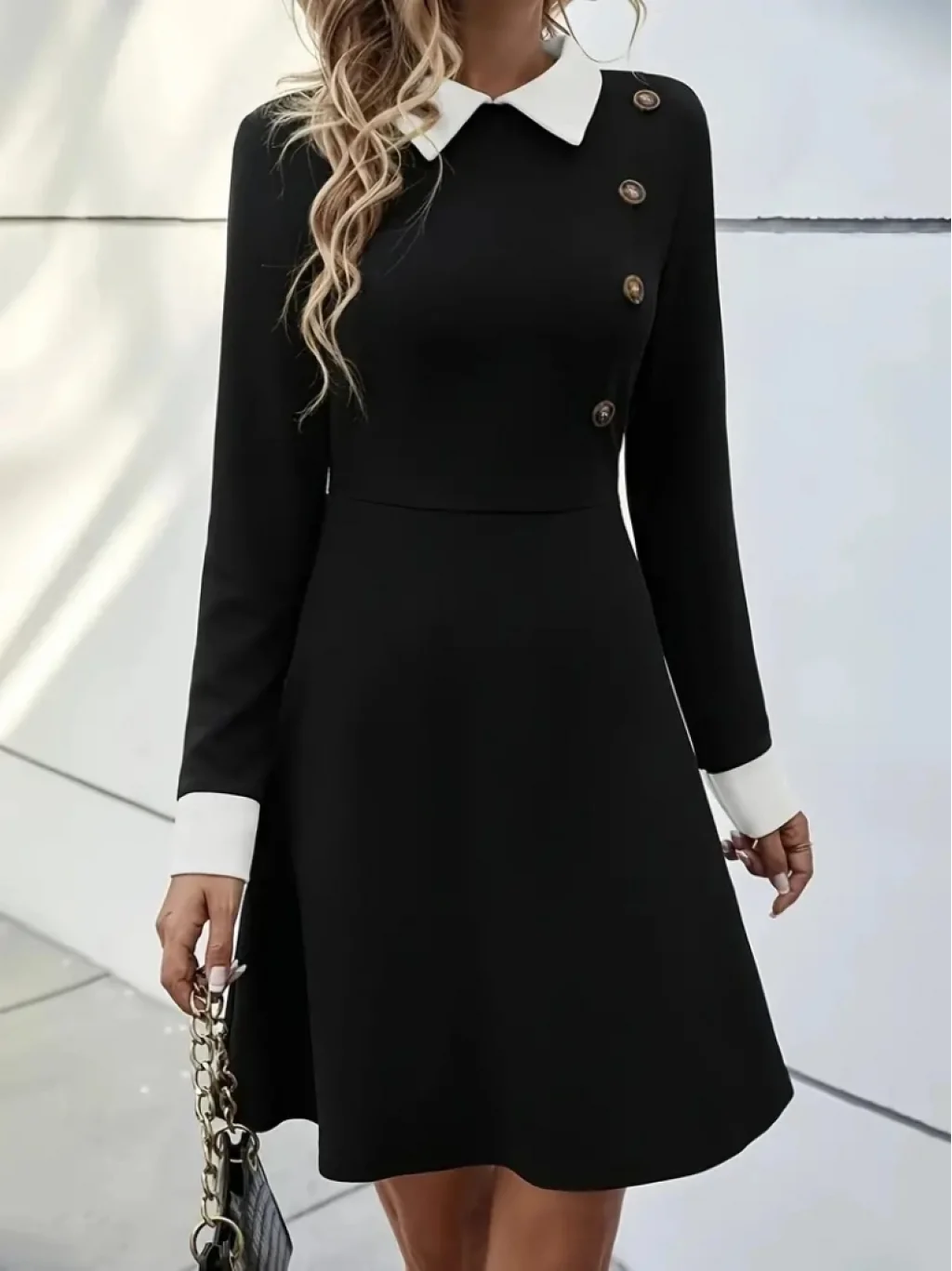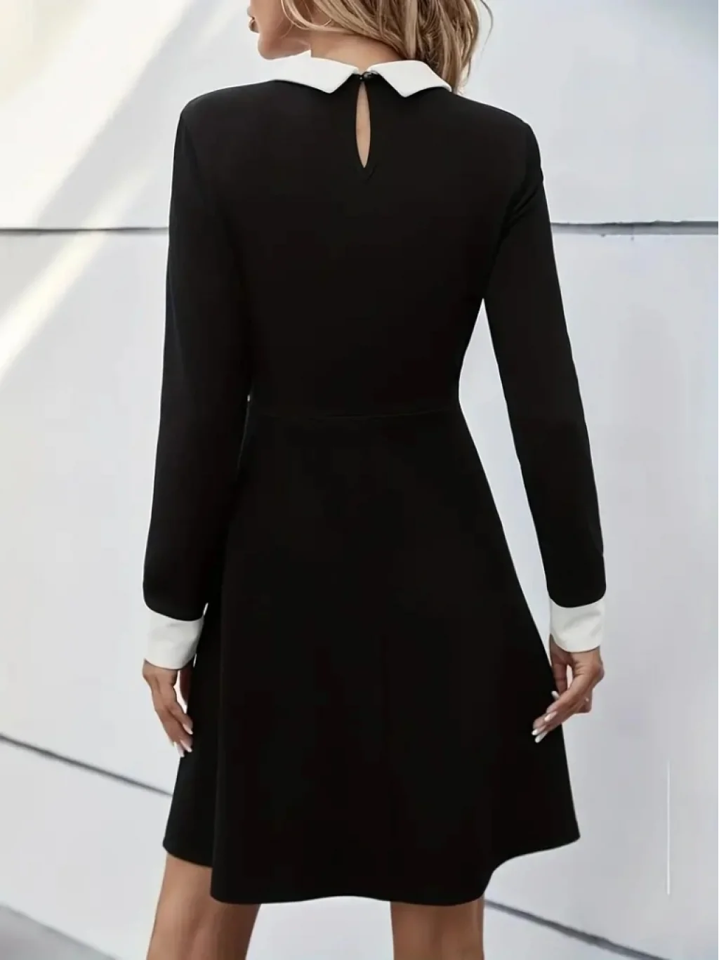 Kadın Uzun Kollu Yakalı A Kesim Kısa Ithal Krep Elbise