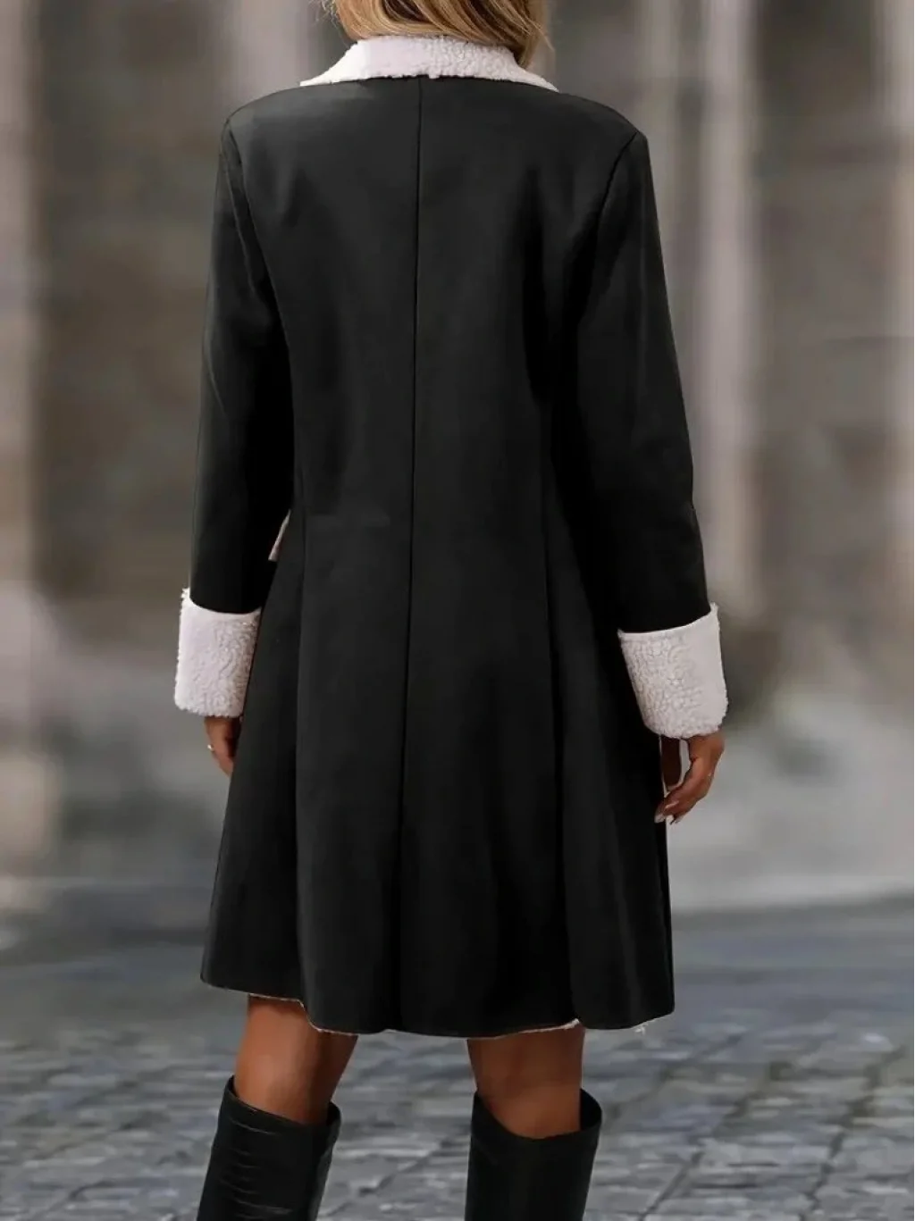 Kadın Uzun Kollu Yakalı Düğmeli Süet Mini Manto