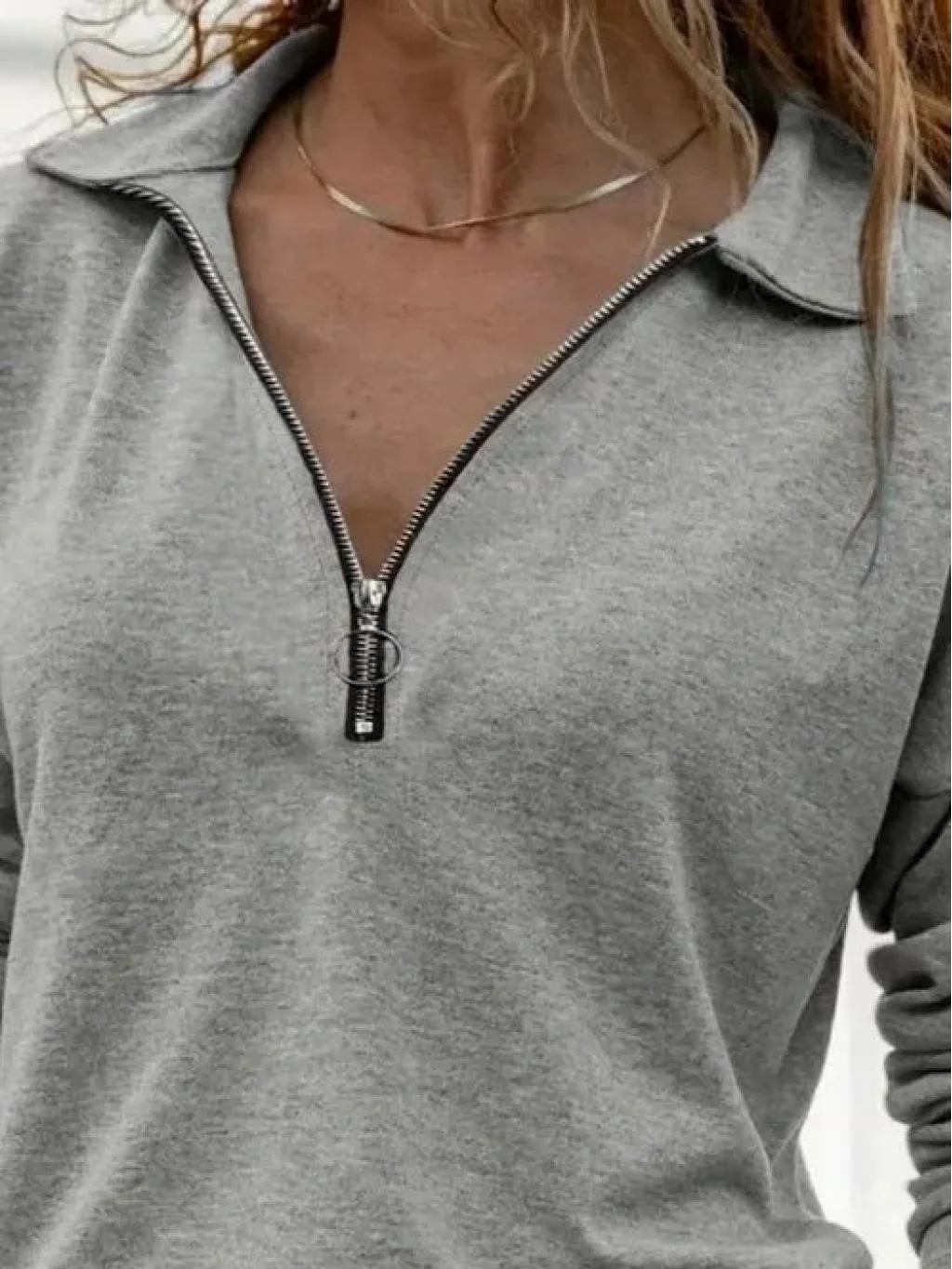Kadın Uzun Kollu Yakalı Fermuarlı Iki Iplik Bluz