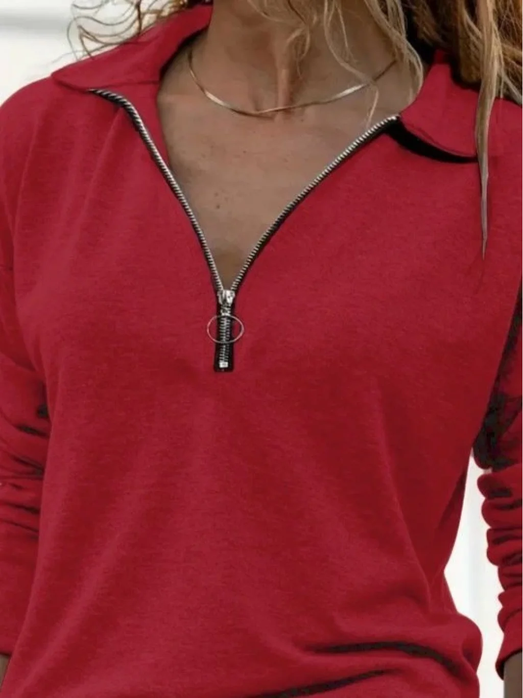 Kadın Uzun Kollu Yakalı Fermuarlı Iki Iplik Bluz