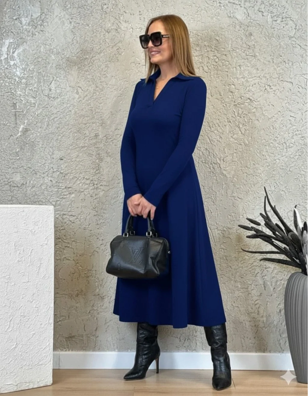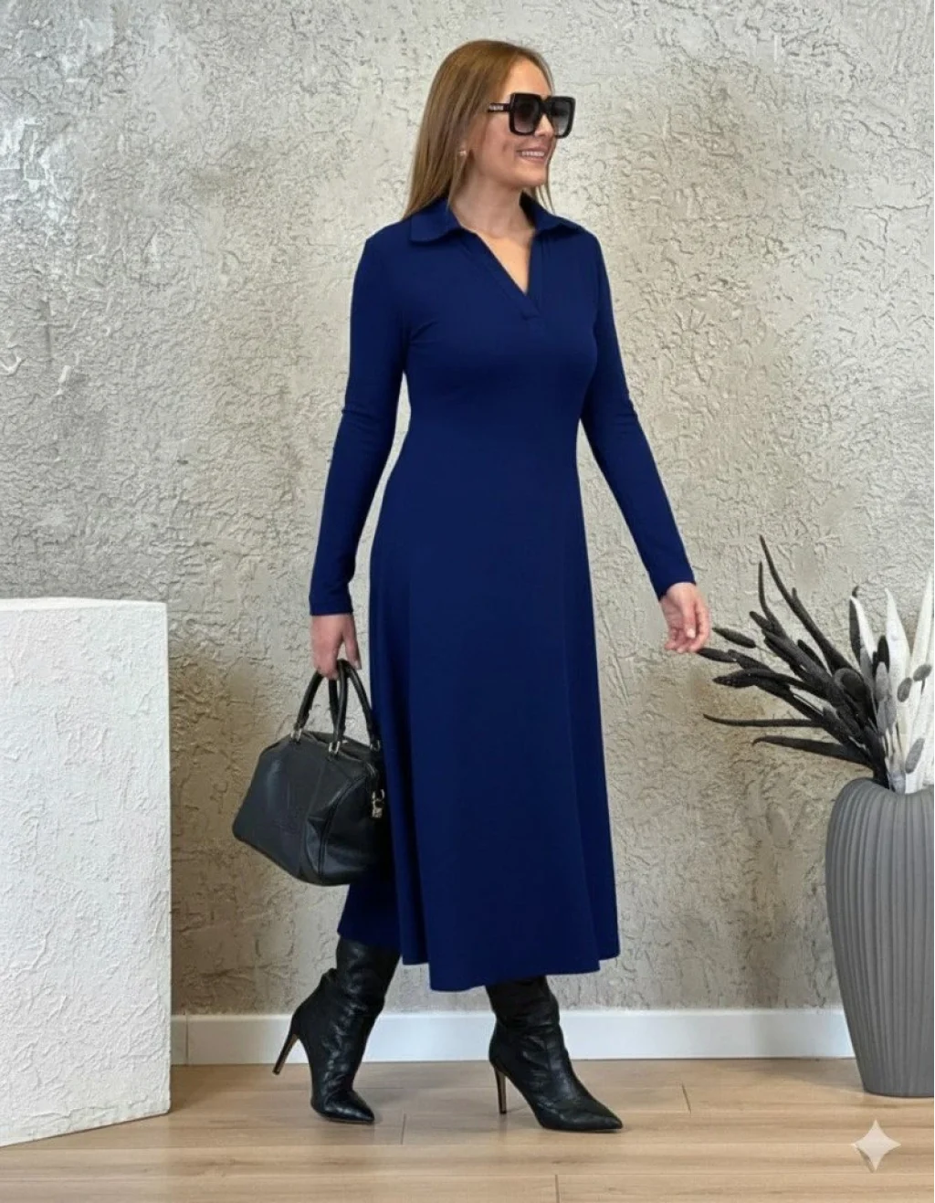 Kadın Uzun Kollu Yakalı Midi Viskon Iki Iplik Elbise