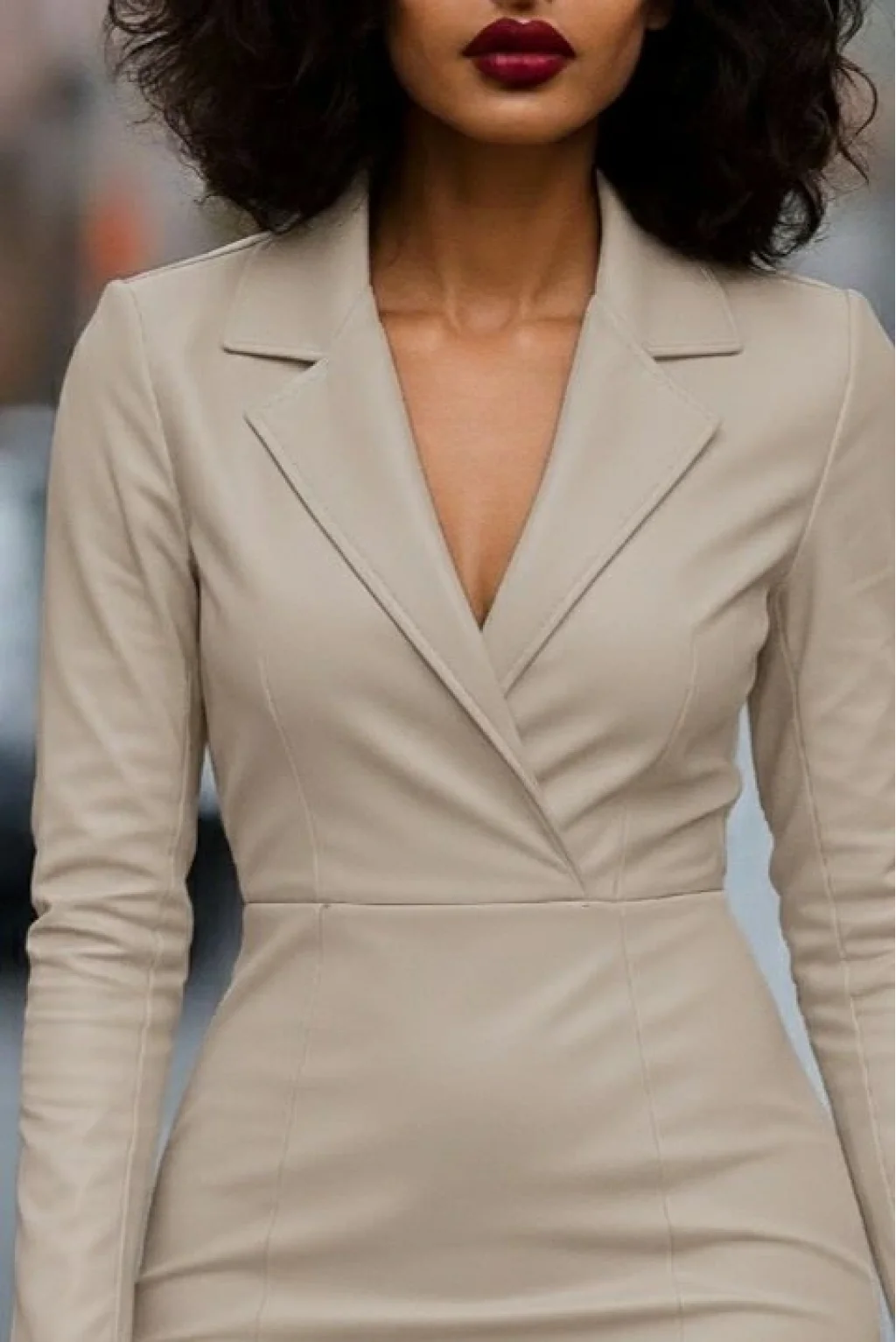 Kadın Uzun Kollu Yakalı Mini Deri Elbise
