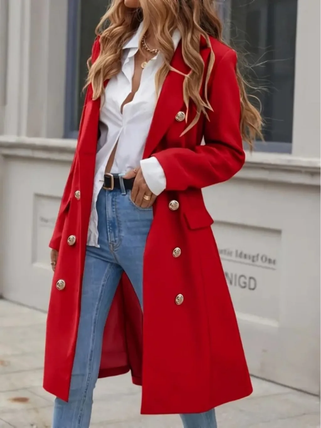 Kadın Uzun Kollu Yakalı önden Düğmeli Midi Kaşe Kaban