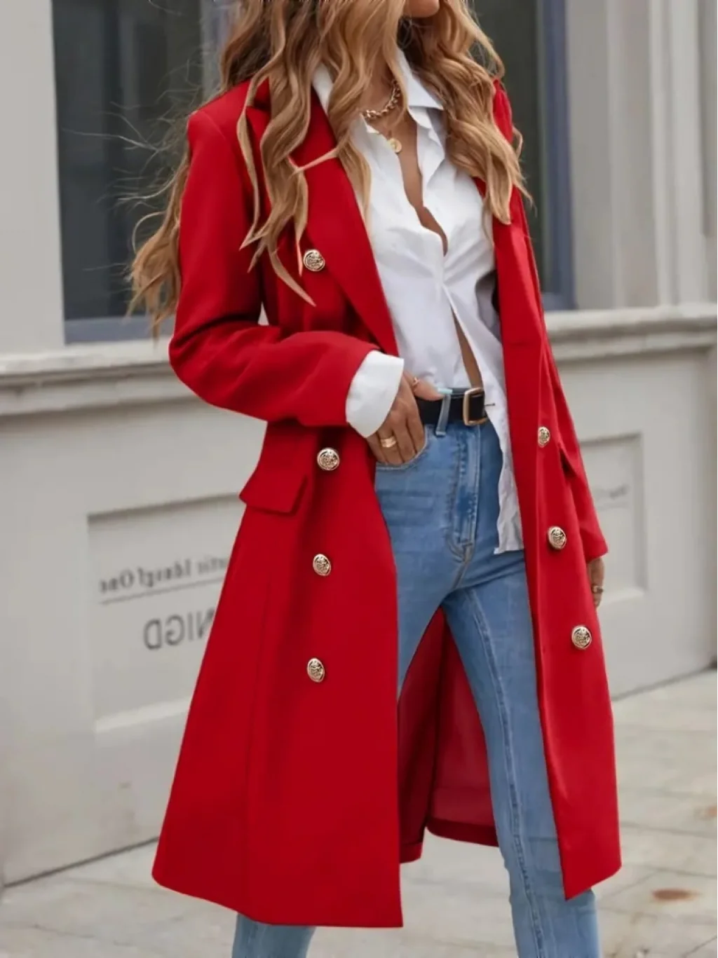 Kadın Uzun Kollu Yakalı önden Düğmeli Midi Kaşe Kaban