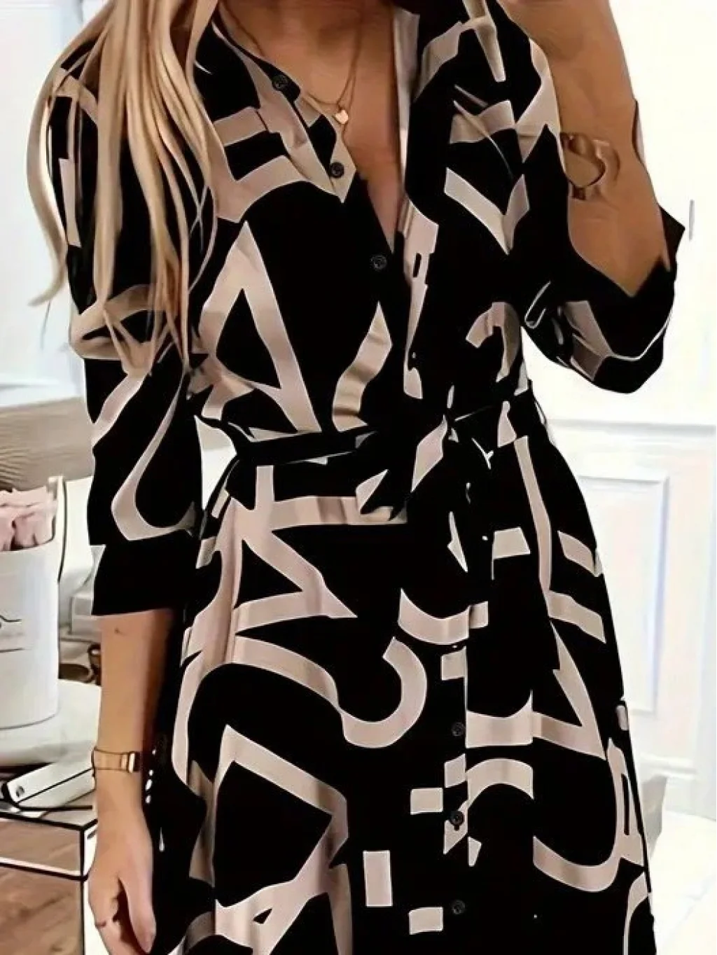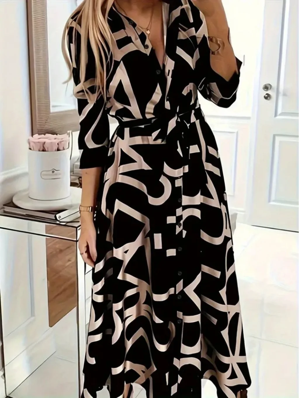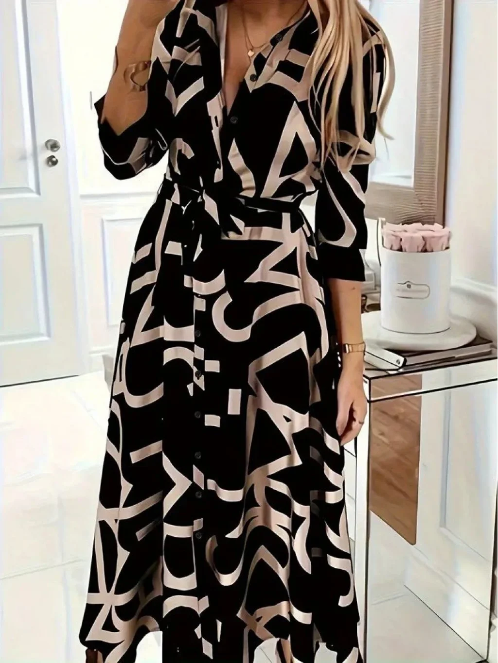 Kadın Uzun Kollu Yakalı önden Düğmeli Uzun Süprem Elbise