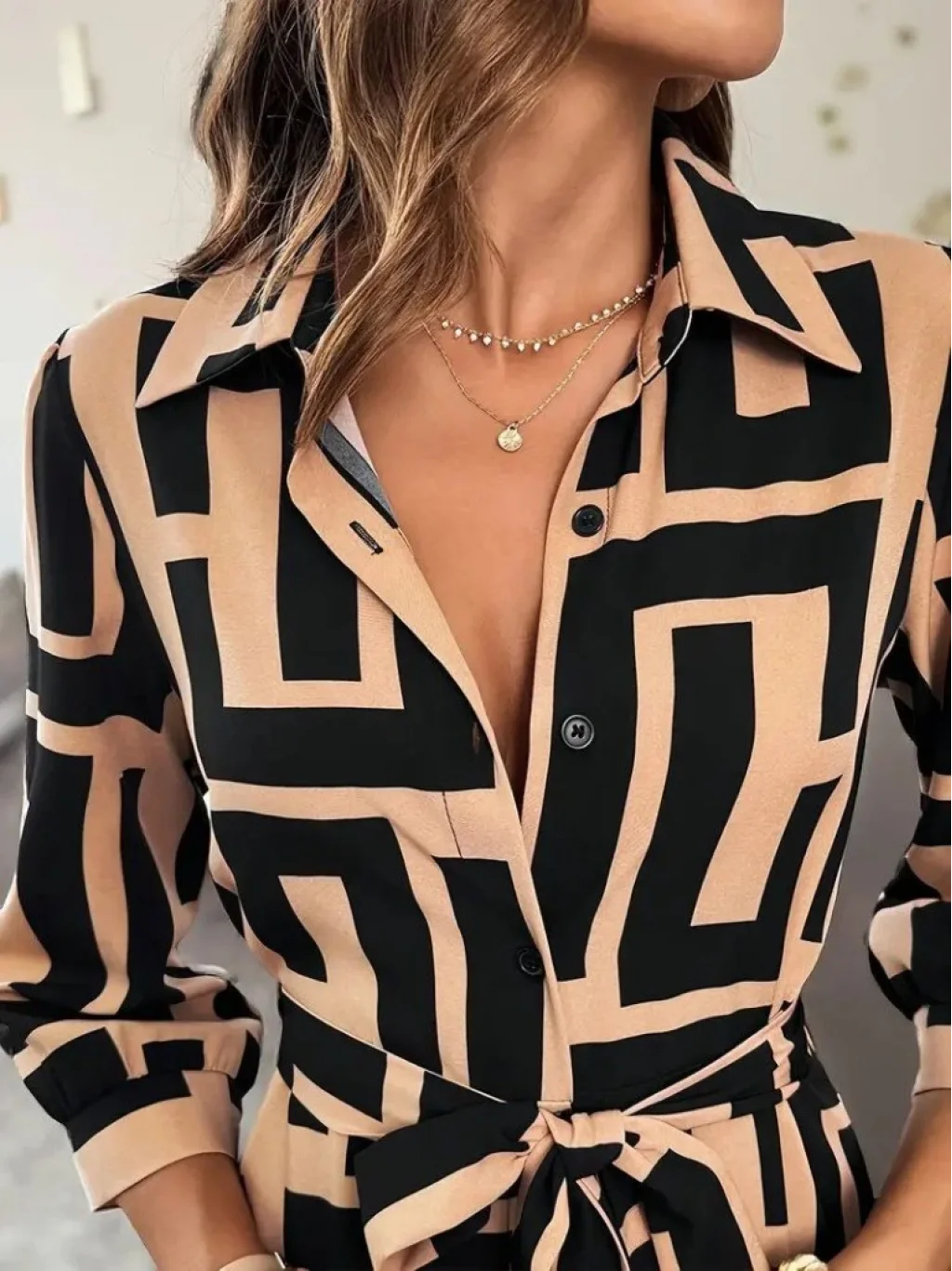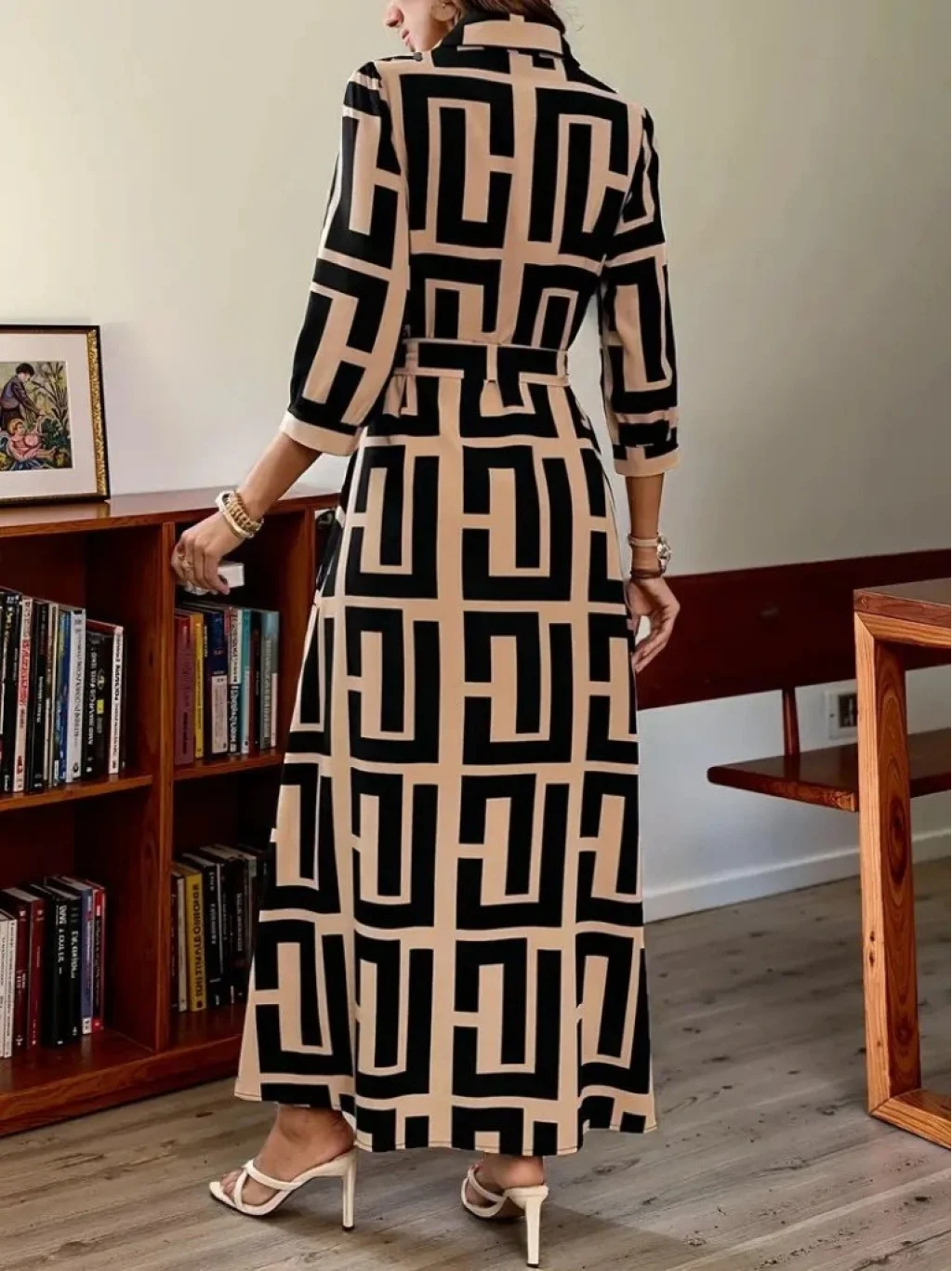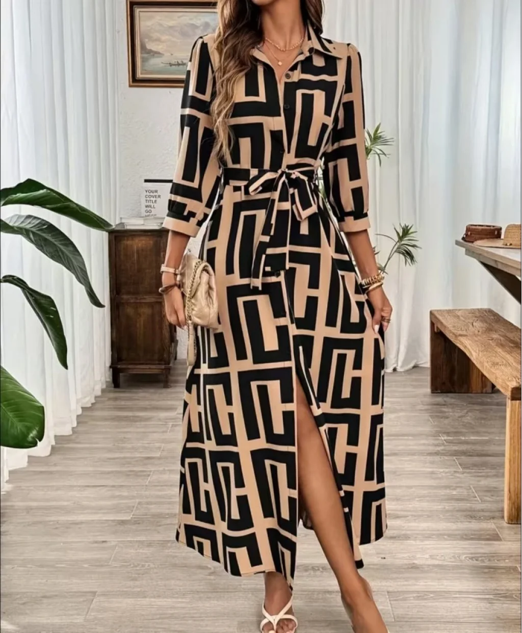 Kadın Uzun Kollu Yakalı önden Düğmeli Uzun Süprem Elbise