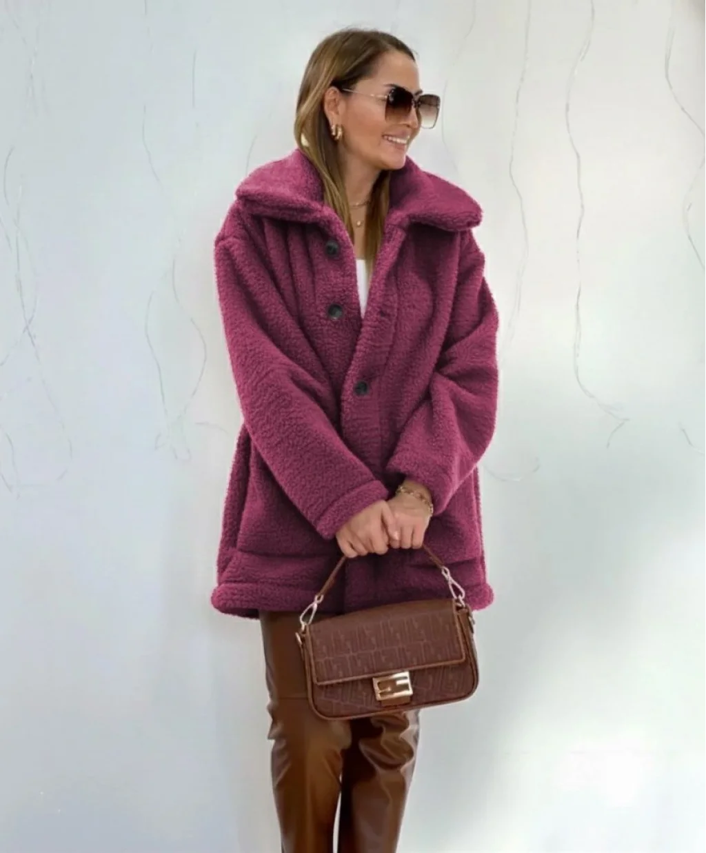 Kadın Uzun Kollu Yakalı önden Düğmeli Welsoft Kaban