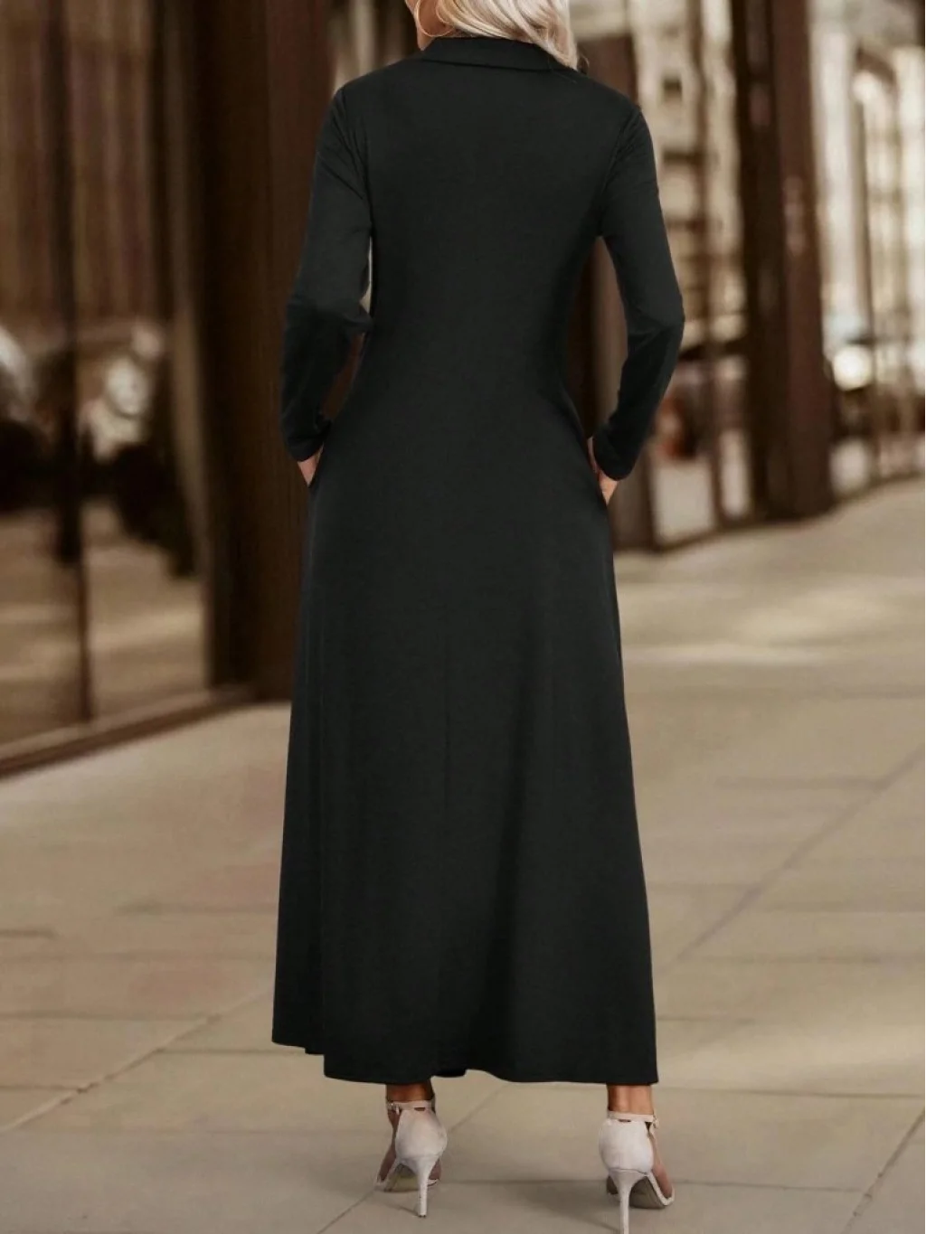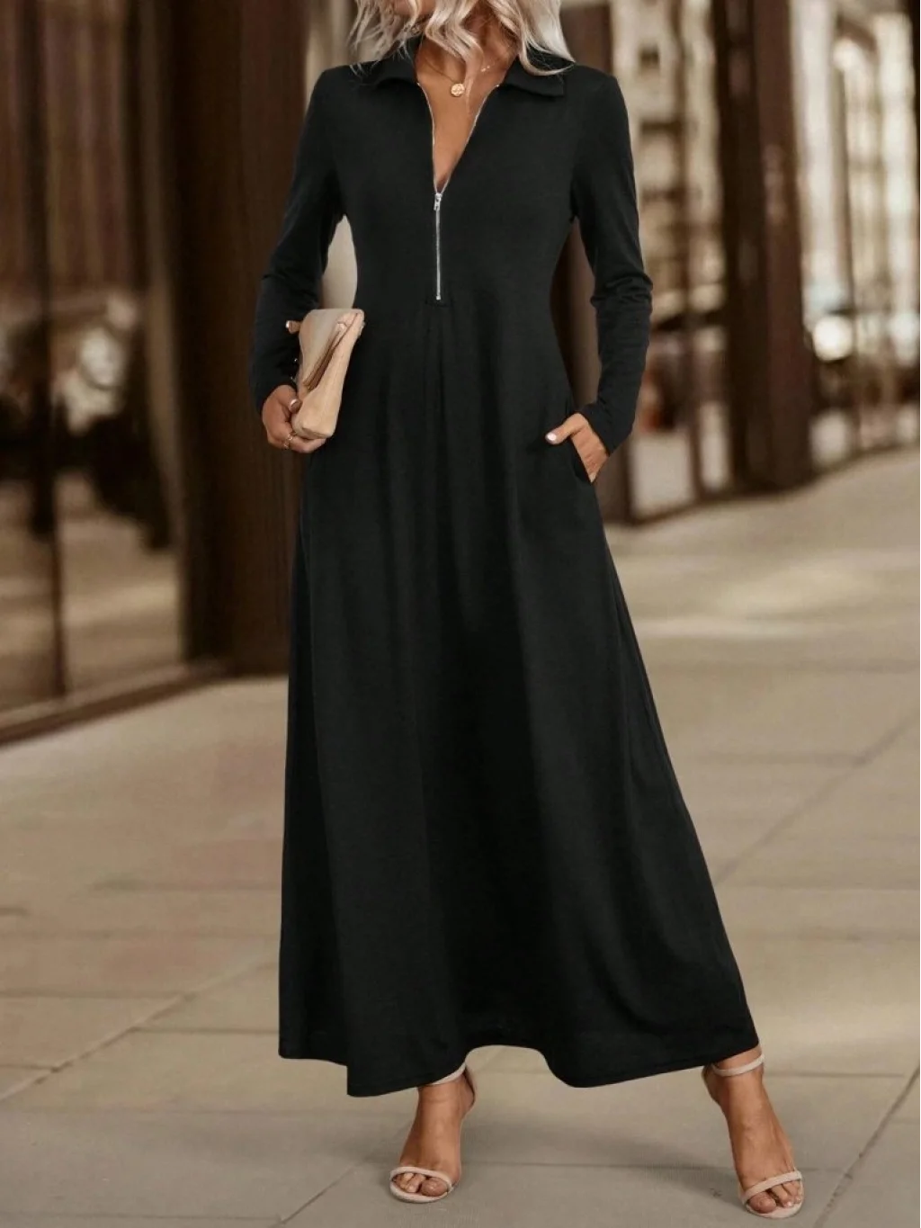Kadın Uzun Kollu Yakalı önden Fermuarlı Uzun Viskon Iki Iplik Elbise